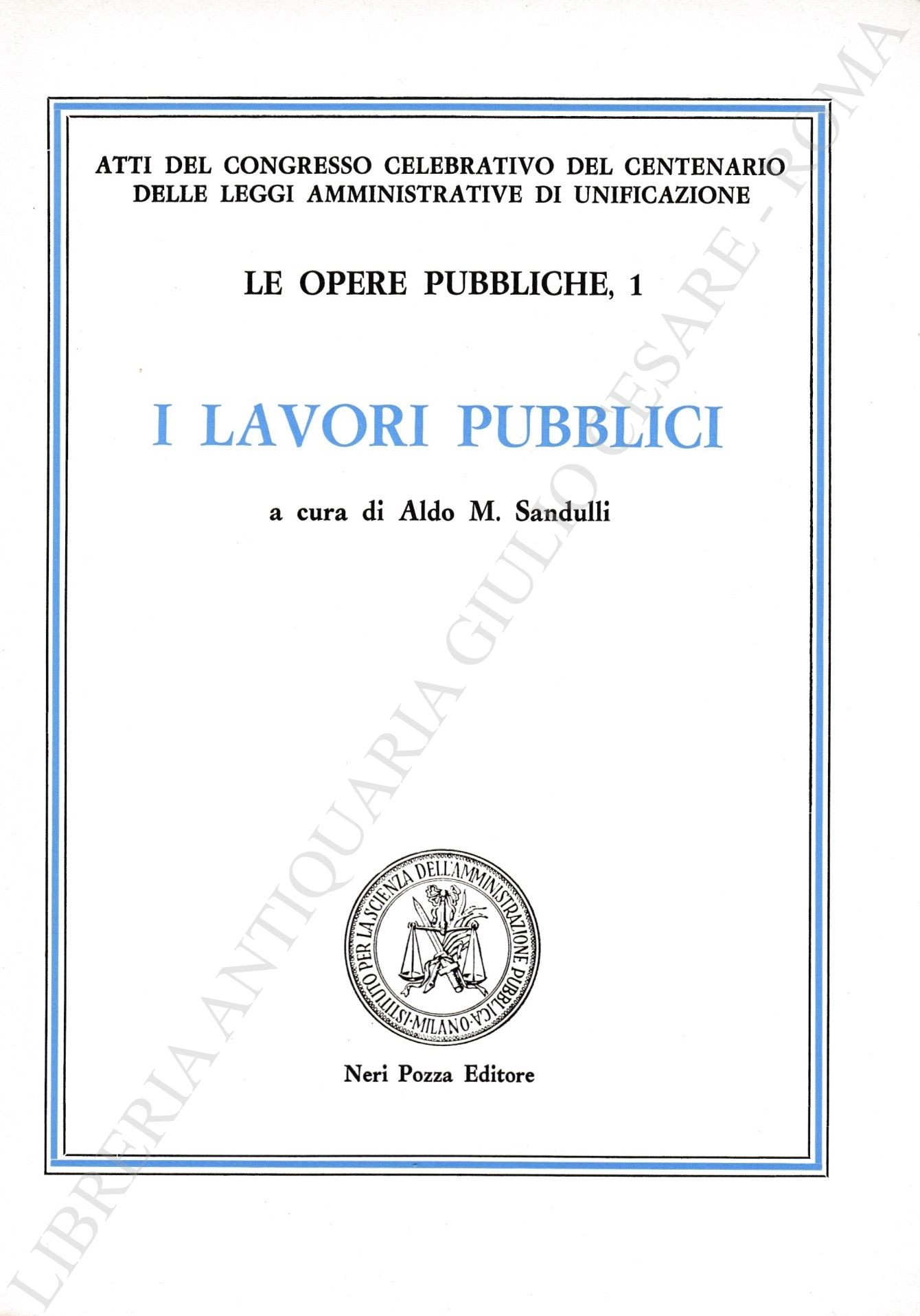Pubblicazioni dell’Istituto per la Scienza dell’Amministrazione Pubblica. Atti del Congresso celebrativo del centenario delle leggi amministrative di unificazione. Sotto l’alto patronato del Presidente della Repubblica. Scritti di: Sandulli, Orusa, La Porta, Falzone, Albano, Abbamonte, Bagnulo, Cassarino, Santaniello, Roehrssen, Cattaneo, Tracanna, D’Angelo, Nigro, Gleijeses, Varanese