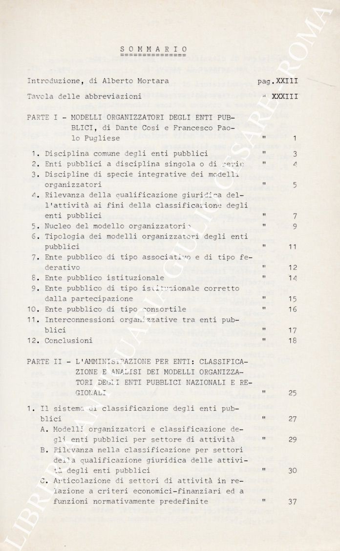 I modelli organizzatori degli enti pubblici. Introduzione di Alberto Mortara