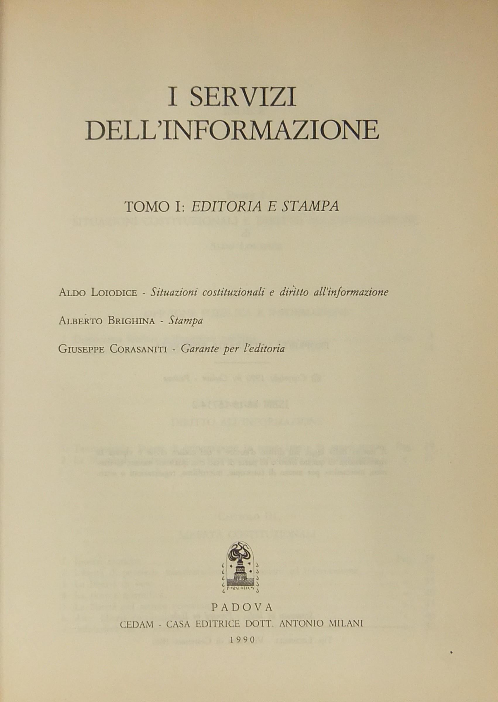 I servizi dell'informazione. Vol. I - Editoria e stampa. (Unico pubblicato) Situazioni costituzionali e diritto all'informazione (Aldo Loiodice). Stampa (Alberto Brighina). Garante per l'editoria (Giuseppe Corasaniti)