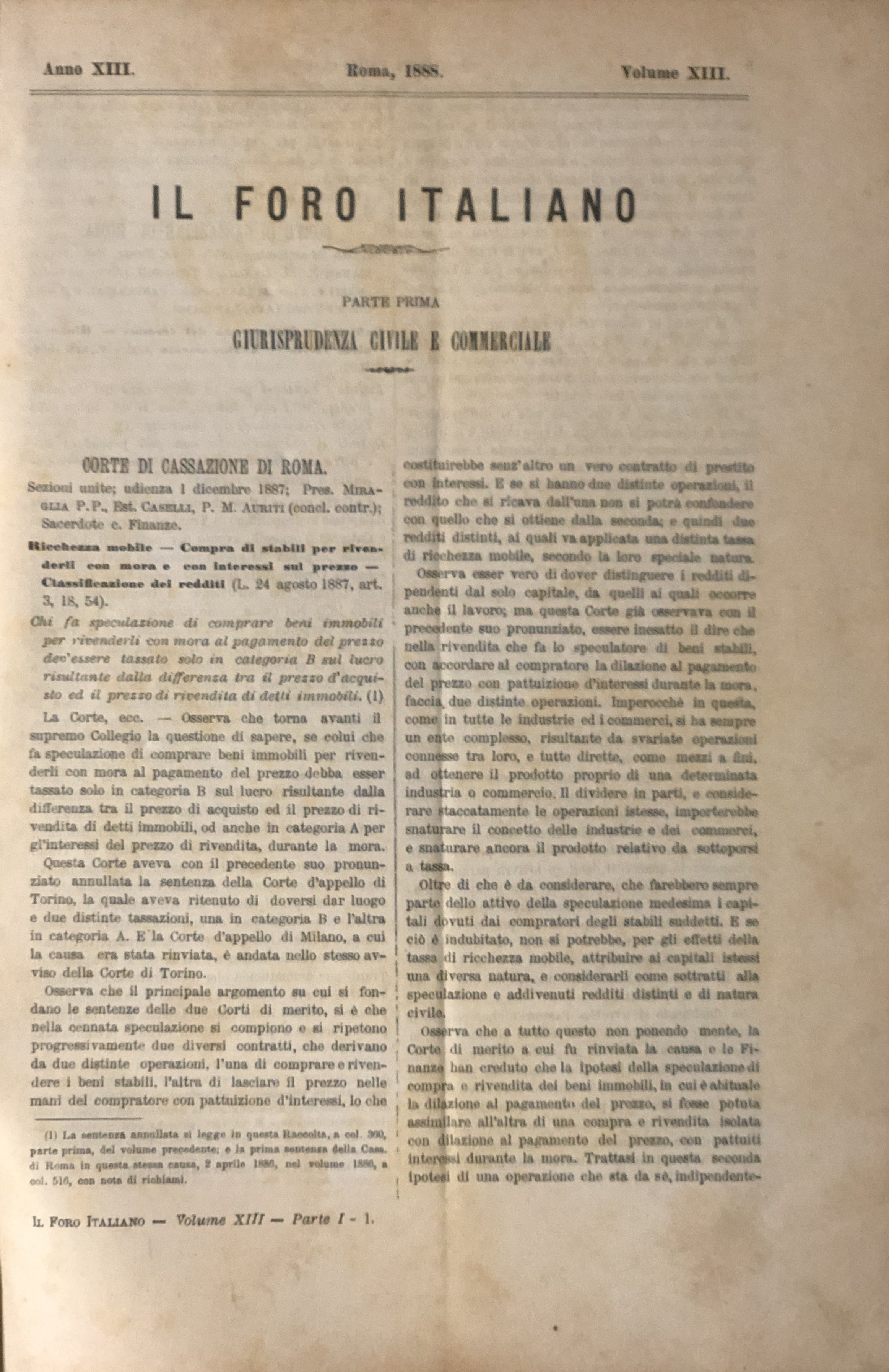 Il Foro Italiano. Fondato nell'anno 1876 da Enrico Scialoja. Anno XIII. 1888
