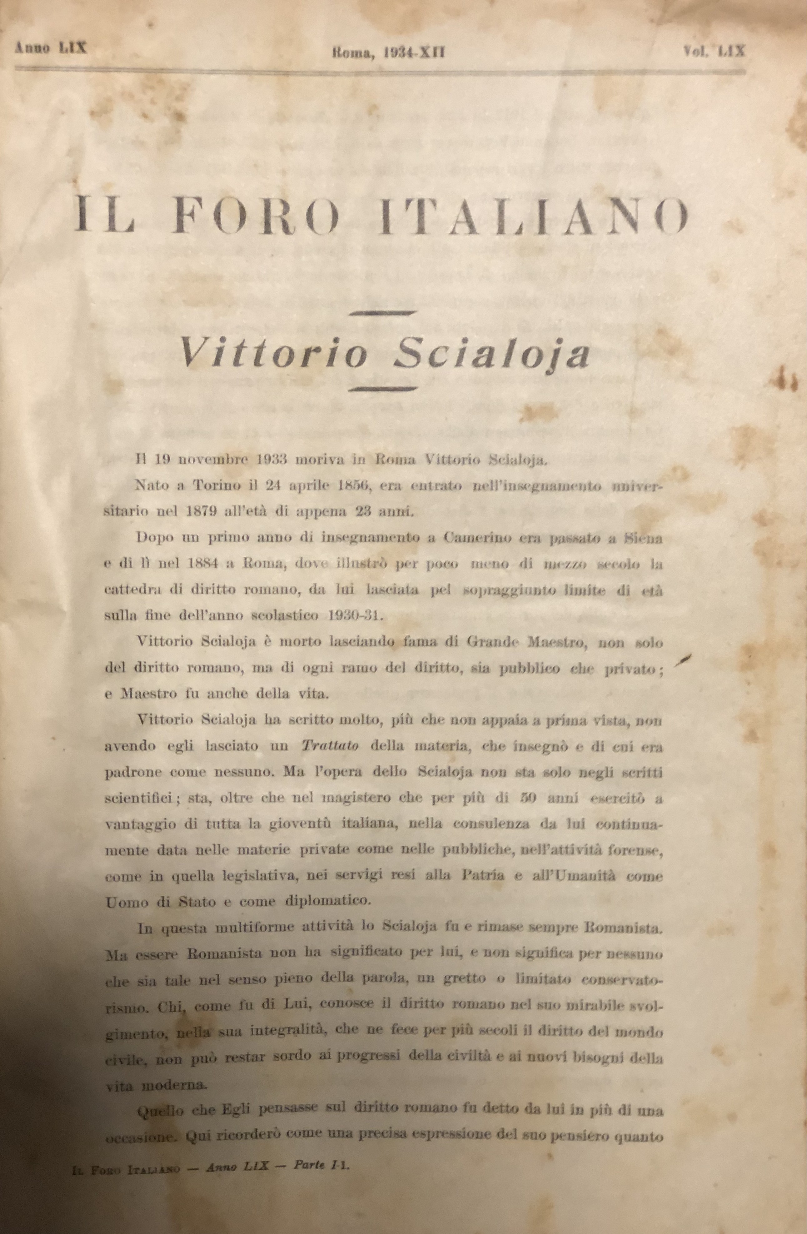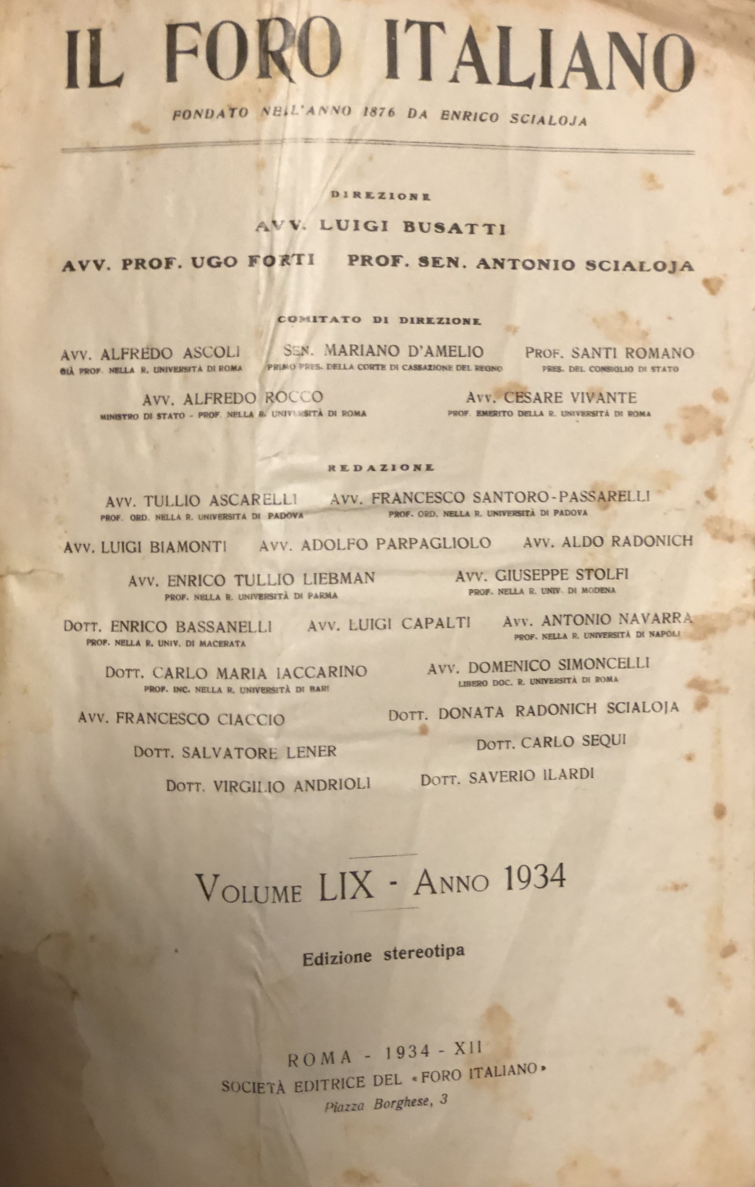 Il Foro Italiano. Fondato nell'anno 1876 da Enrico Scialoja. Anno LIX. 1934