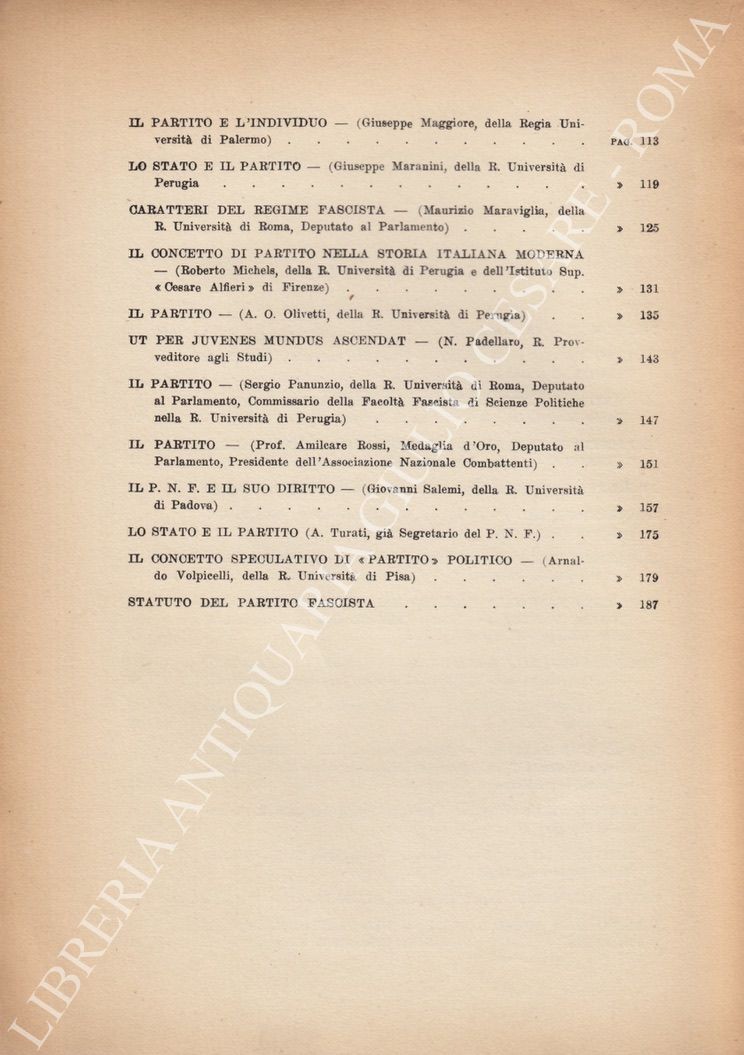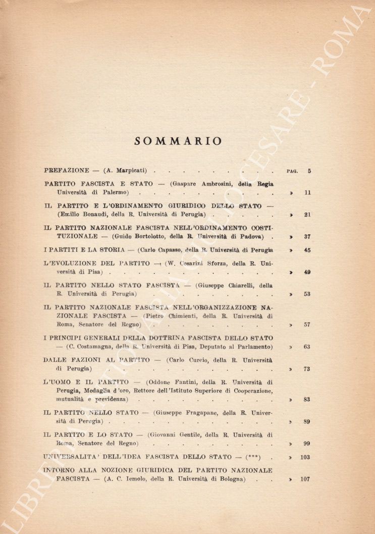 Ambrosini G. - Bonaudi E. - Bortolotto G. - Capasso C. - Cesarini Sforza W. - Chiarelli G. - Chimienti P. - Costamagna C. - Fantini O. - Gentile G. - Jemolo A.C. - Maggiore G. - Maranini G. - Michels R. - Panunzio S. - Salemi G. et alii