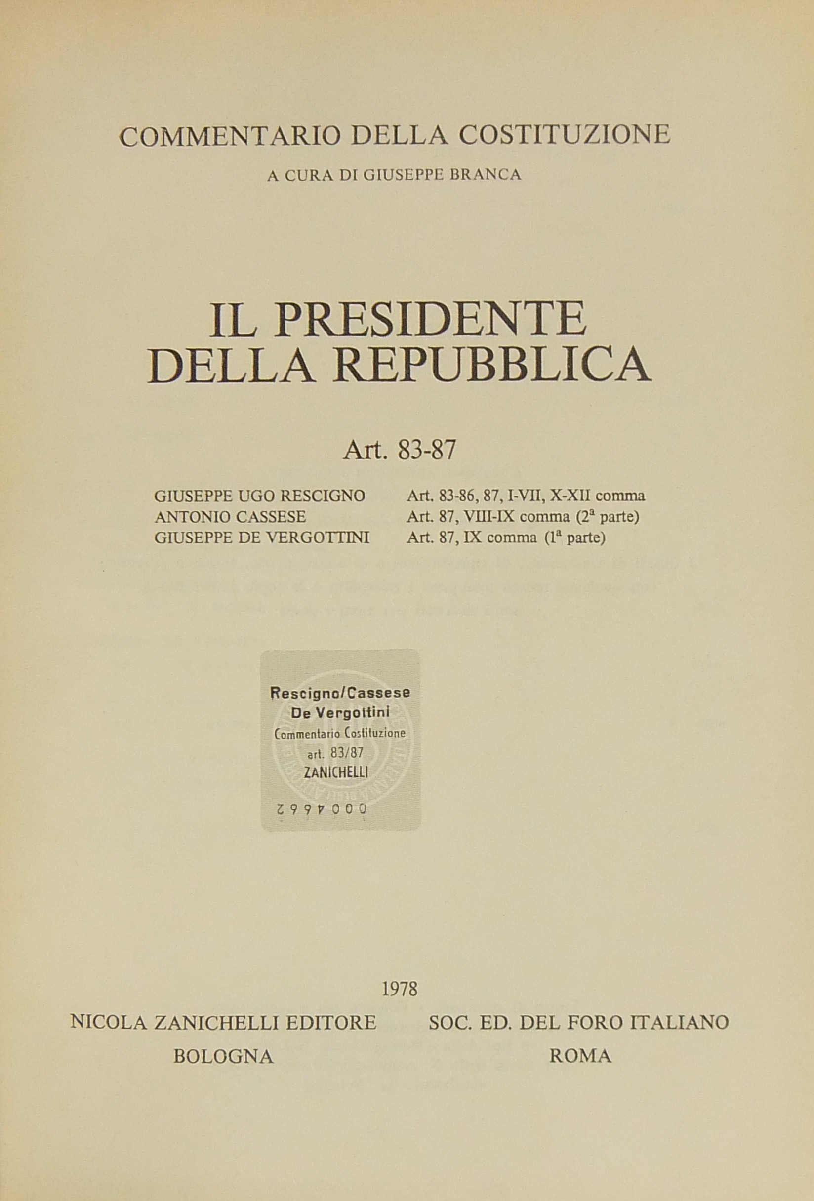Direttore Collana: Fondato da G. Branca e continuato da A. Pizzorusso