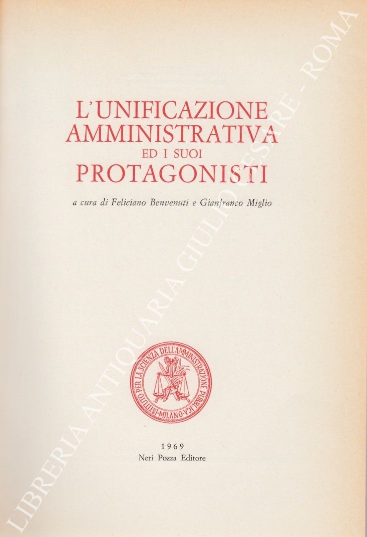 Pubblicazioni dell'Istituto per la Scienza dell'Amministrazione Pubblica. Atti del Congresso celebrativo del centenario delle leggi amministrative di unificazione. Sotto l'alto patronato del Presidente della Repubblica. Scritti di: Miglio, Benvenuti, Ruffilli, Malinverni, Guichonnet, Brancato, Berselli, Pivano, Pansini, Berti, Jacini, Traniello