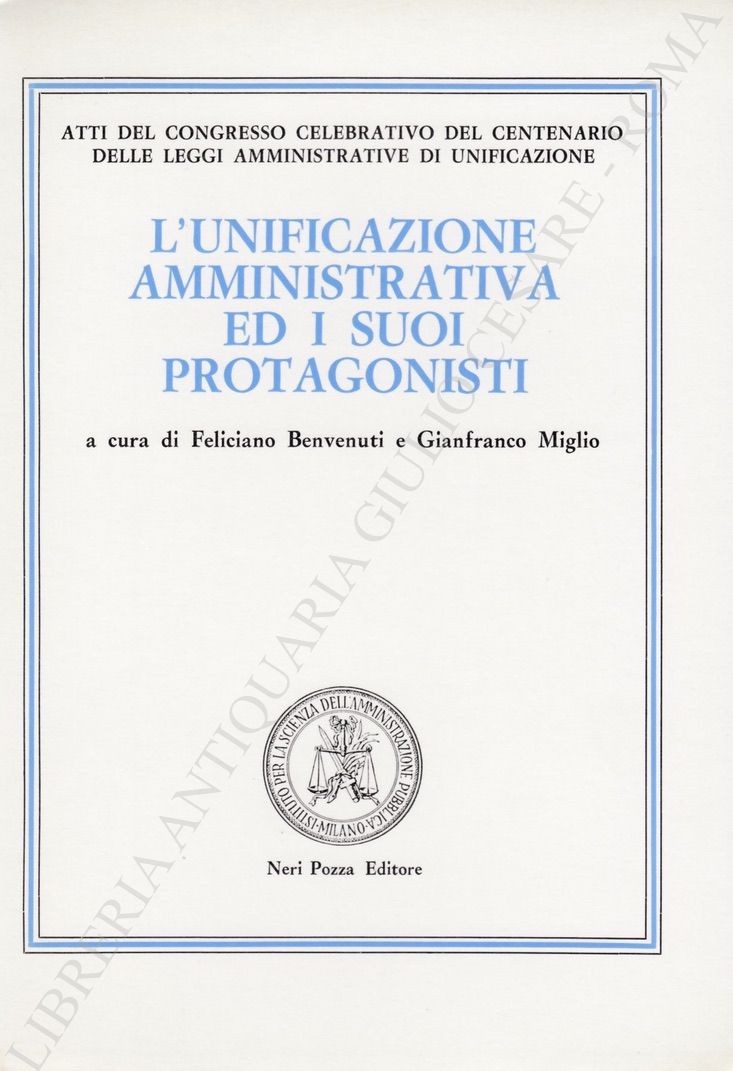 Pubblicazioni dell’Istituto per la Scienza dell’Amministrazione Pubblica. Atti del Congresso celebrativo del centenario delle leggi amministrative di unificazione. Sotto l’alto patronato del Presidente della Repubblica. Scritti di: Miglio, Benvenuti, Ruffilli, Malinverni, Guichonnet, Brancato, Berselli, Pivano, Pansini, Berti, Jacini, Traniello