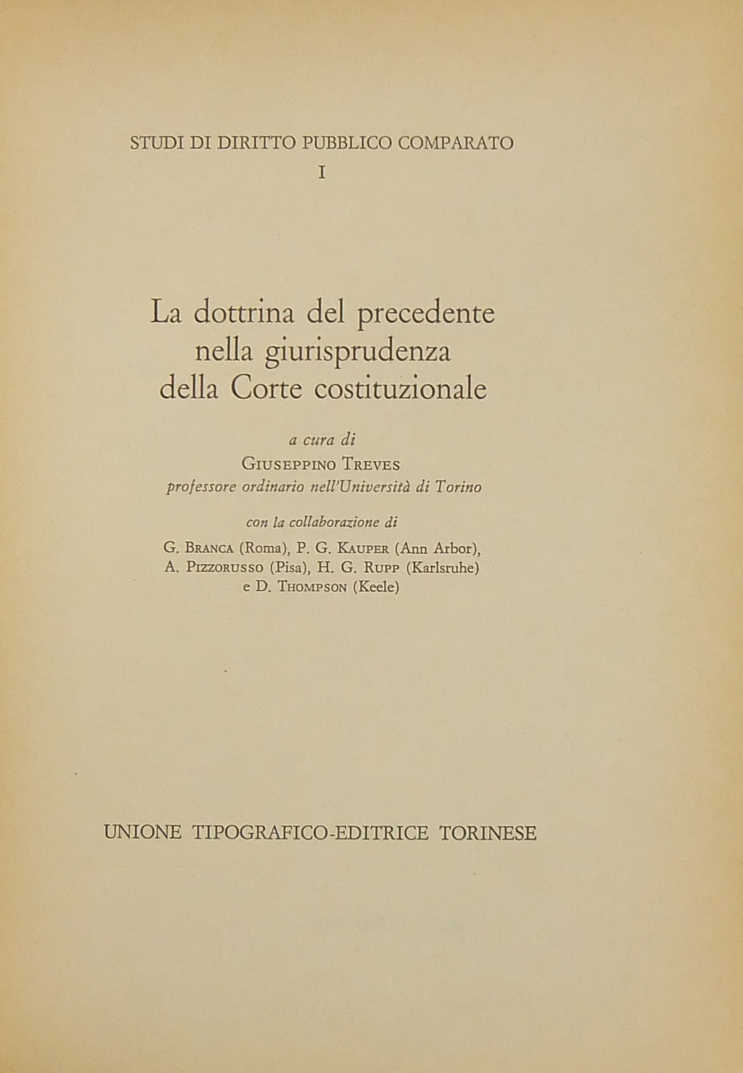La dottrina del precedente nella giurisprudenza della Corte Costituzionale. Con la collaborazione di: G. Branca, P.G. Kauper, A. Pizzorusso, H.G. Rupp, D. Thompson