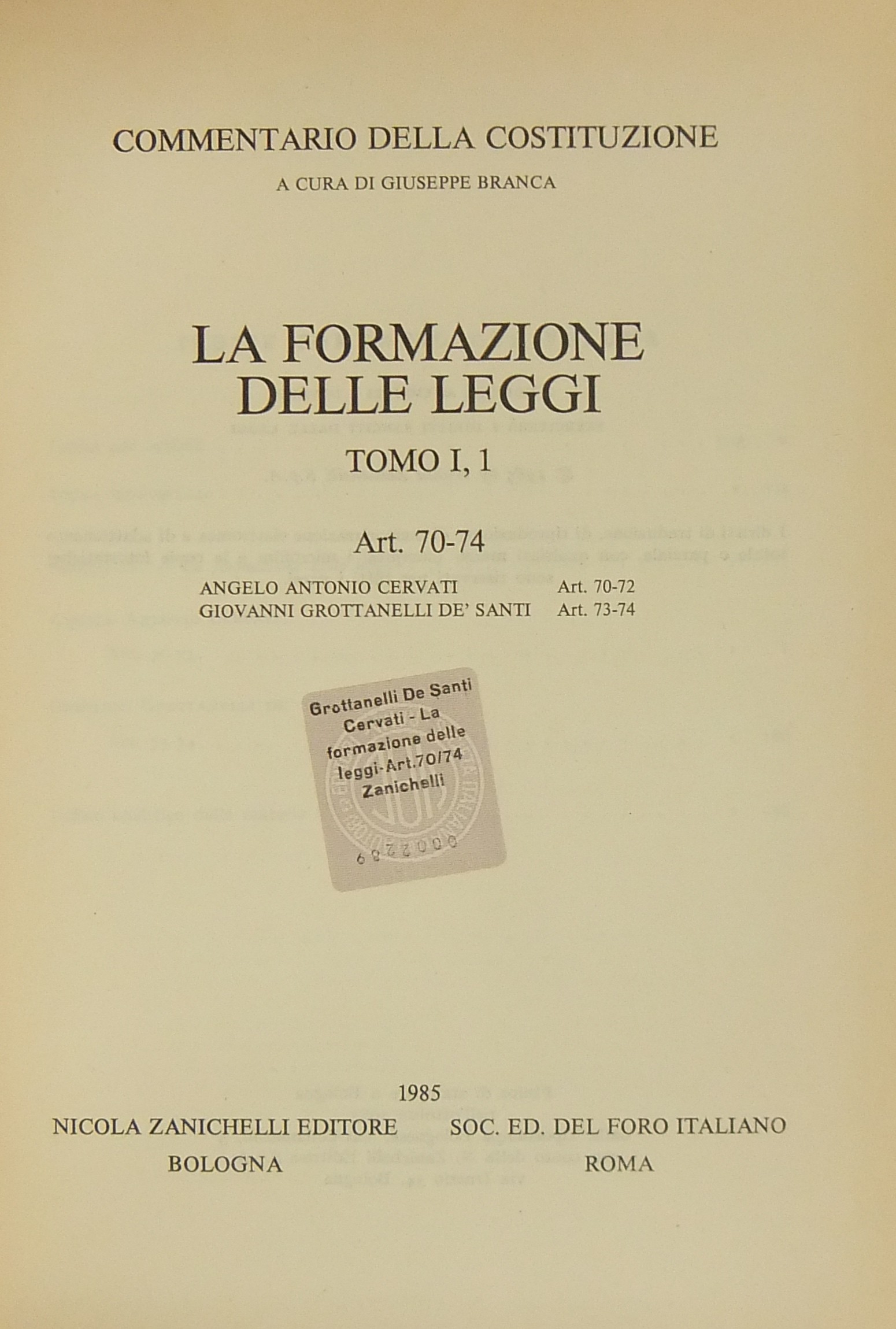 La formazione delle leggi. Tomo I,1 - Art. 70-74