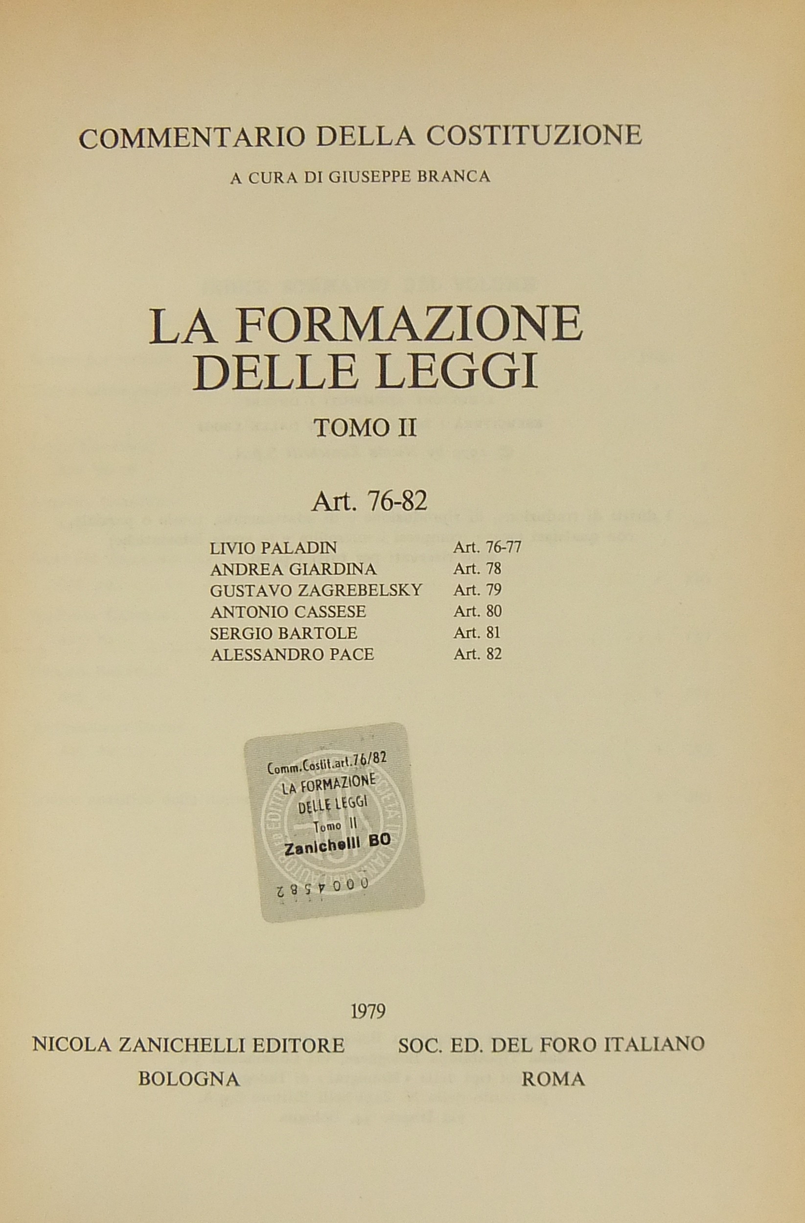 Direttore Collana: Fondato da G. Branca e continuato da A. Pizzorusso