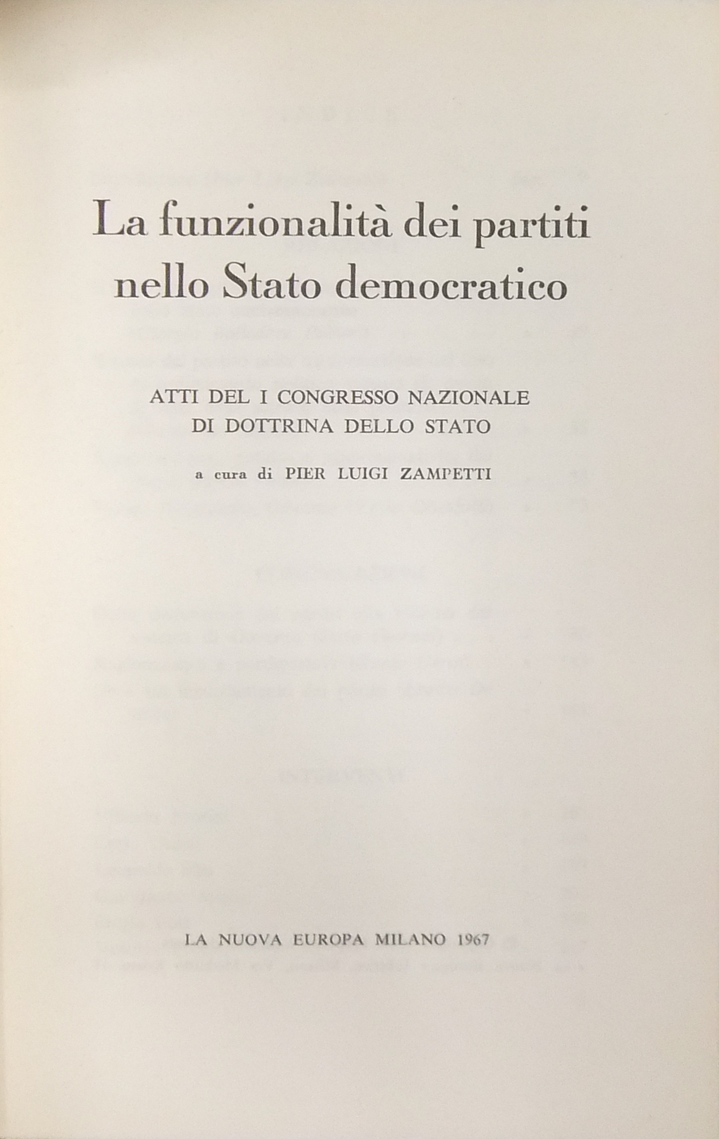 La funzionalità dei partiti nello Stato democratico. Atti del I° Congresso nazionale di dottrina dello Stato. A cura di Pier Luigi Zampetti