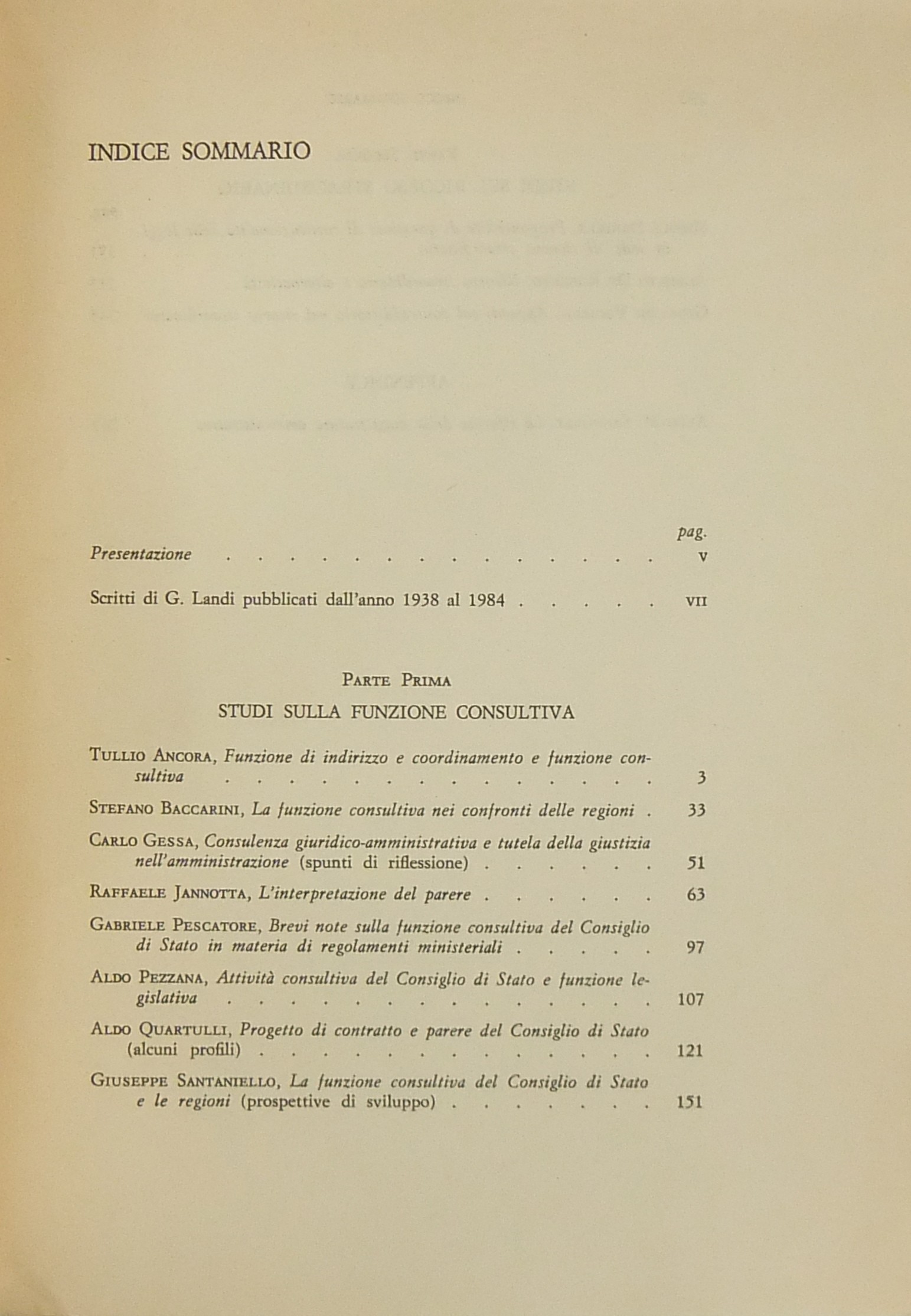 La funzione consultiva del Consiglio di Stato. Studi in onore di Guido Landi