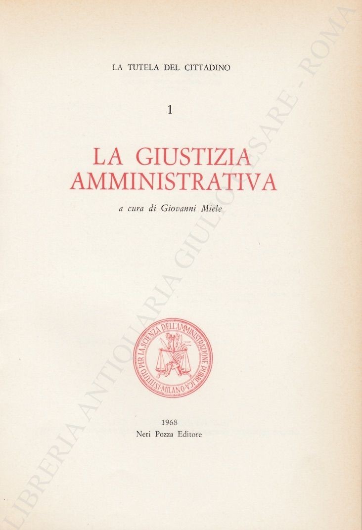 Collana: L'Unificazione Amministrativa e i suoi Protagonisti. La Tutela del Cittadino