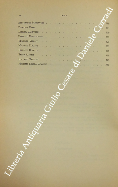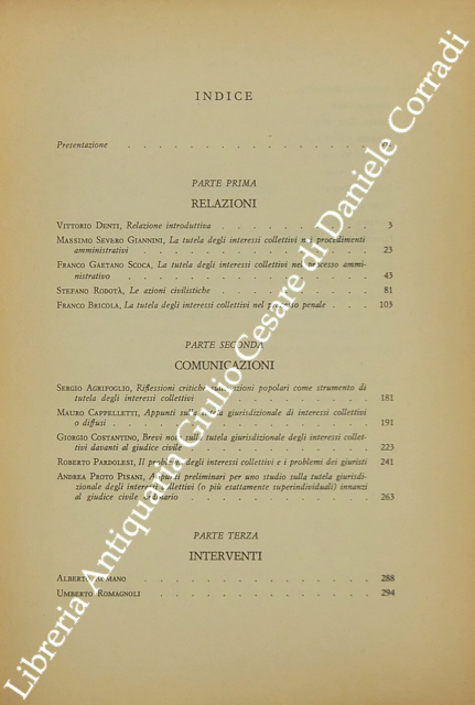 Scritti di: Agrifoglio, Amodio, Bricola, Cappelletti, Carpi, G. Costantino, Denti, M.S. Giannini, Pardolesi, Pototschnig, Proto Pisani, Pizzorusso, Rodotà, A. Romano, Romagnoli, Roselli, Scoca, Tarello, Taruffo, Vigoriti, Zanuttigh.