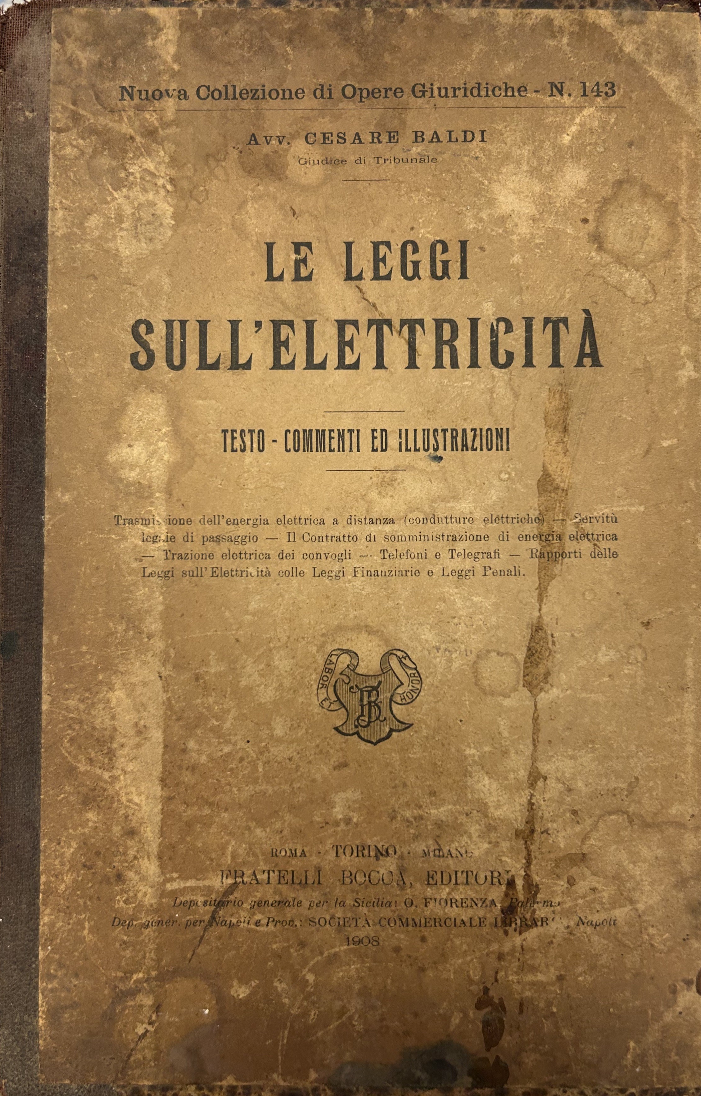 Le leggi sull'elettricità . Testo - Commenti ed illustrazioni. Trasmissione dell'energia elettrica a distanza (condutture elettriche). Servitù legale di passaggio. Il contratto di somministrazione di energia elettrica. Trazione elettrica dei convogli. Telefoni e telegrafi. Rapporti delle Leggi sull'Elettricità colle leggi finanziarie e Leggi Penali