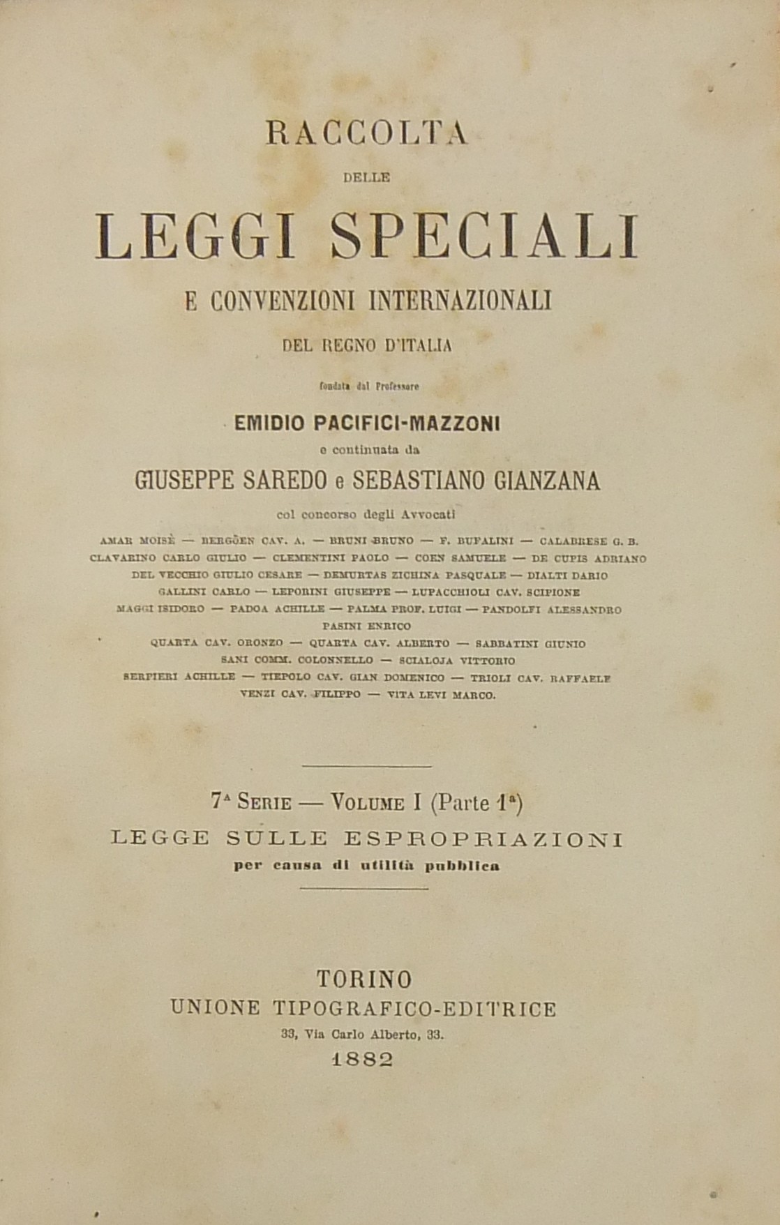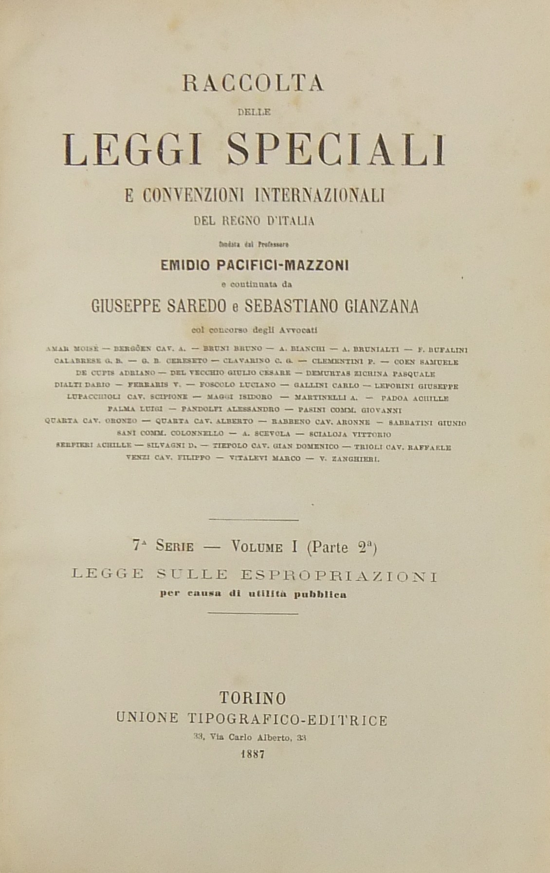 Collana: Raccolta delle leggi speciali e convenzioni internazionali del Regno d'Italia fondata da E. Pacifici-Mazzoni