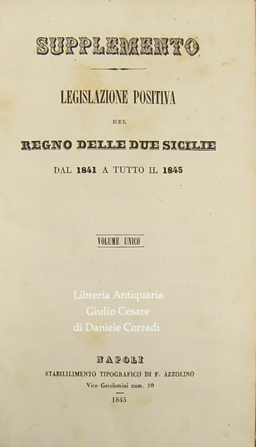 Legislazione positiva del Regno delle Due Sicilie dal 1841 a tutto il 1845. Supplemento