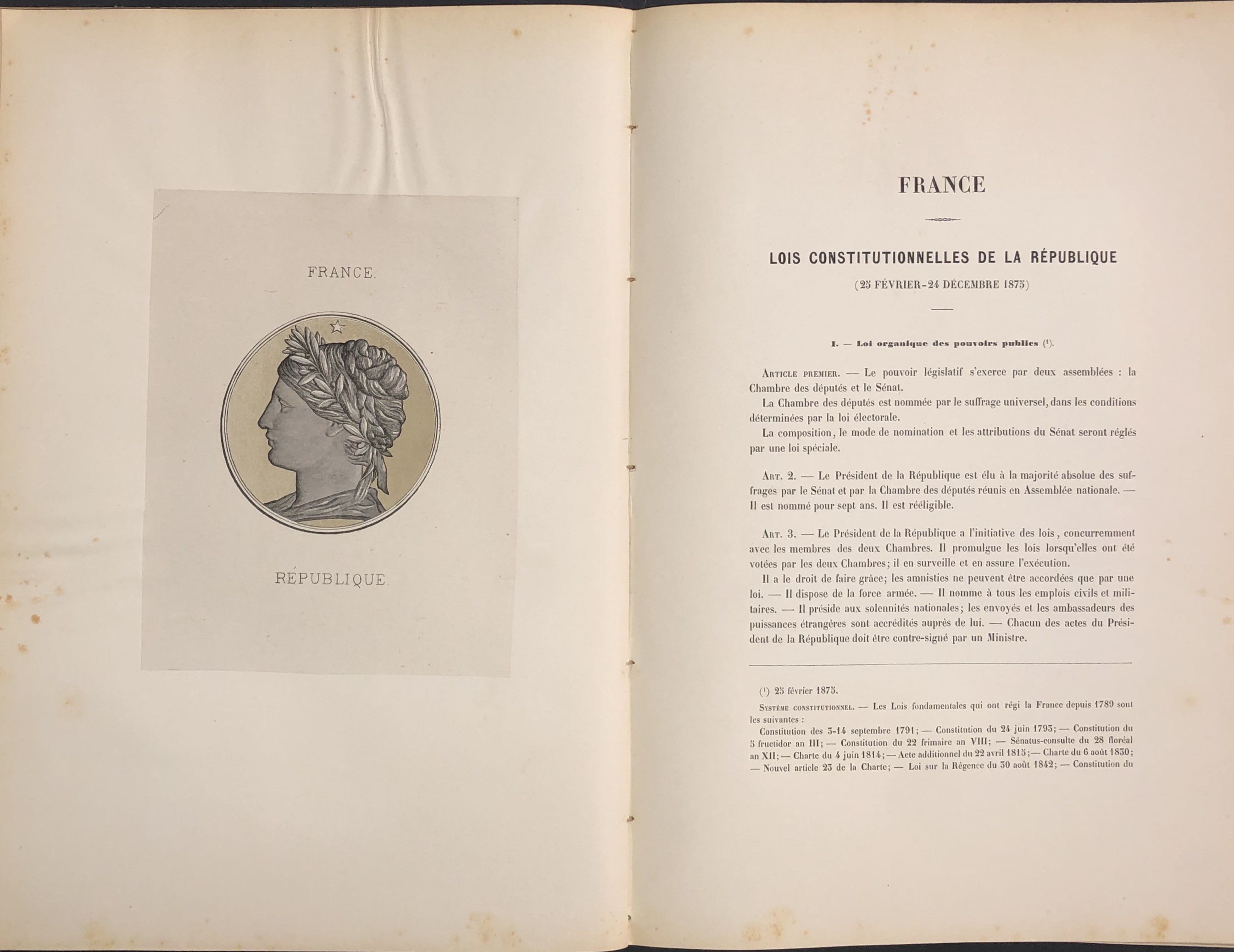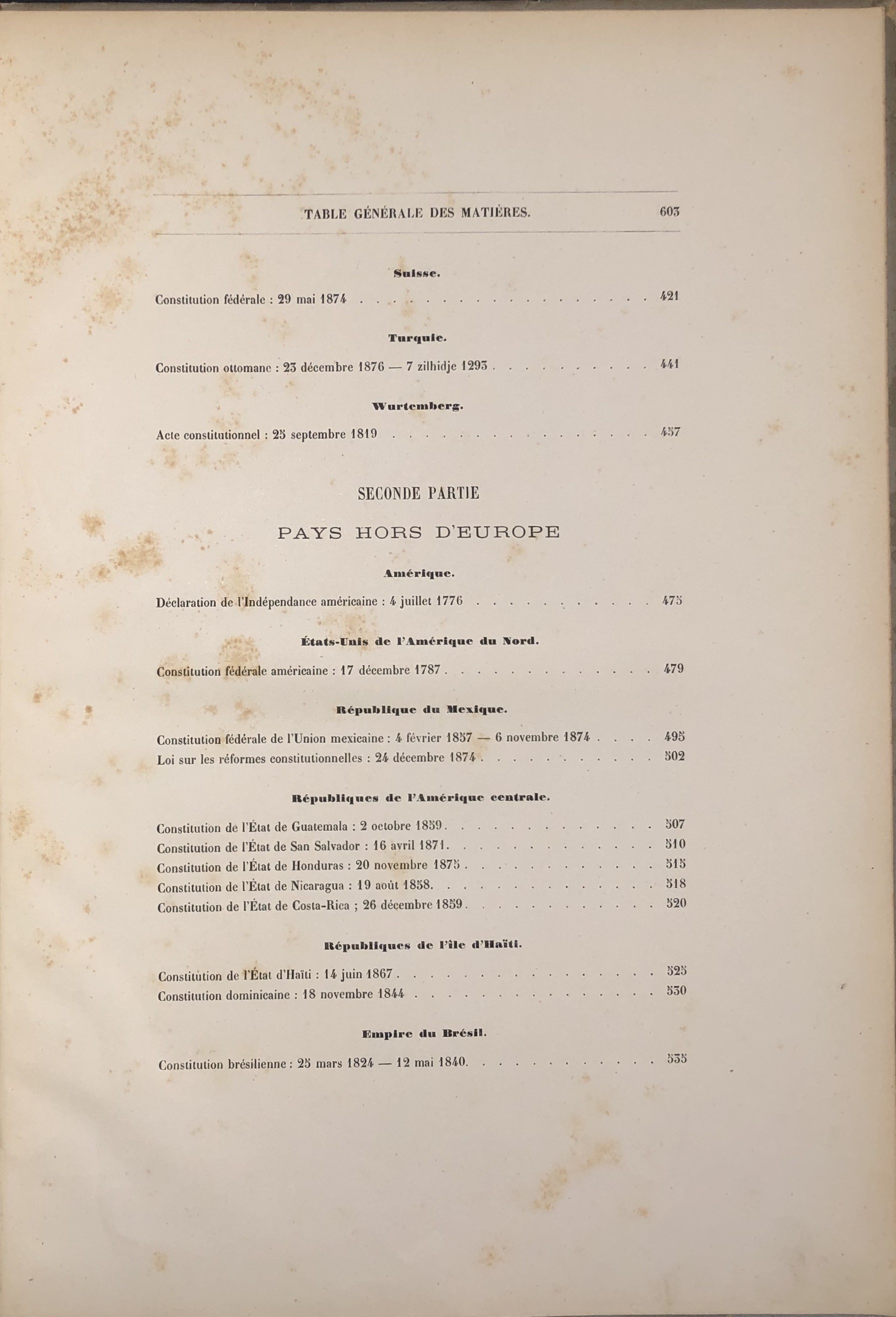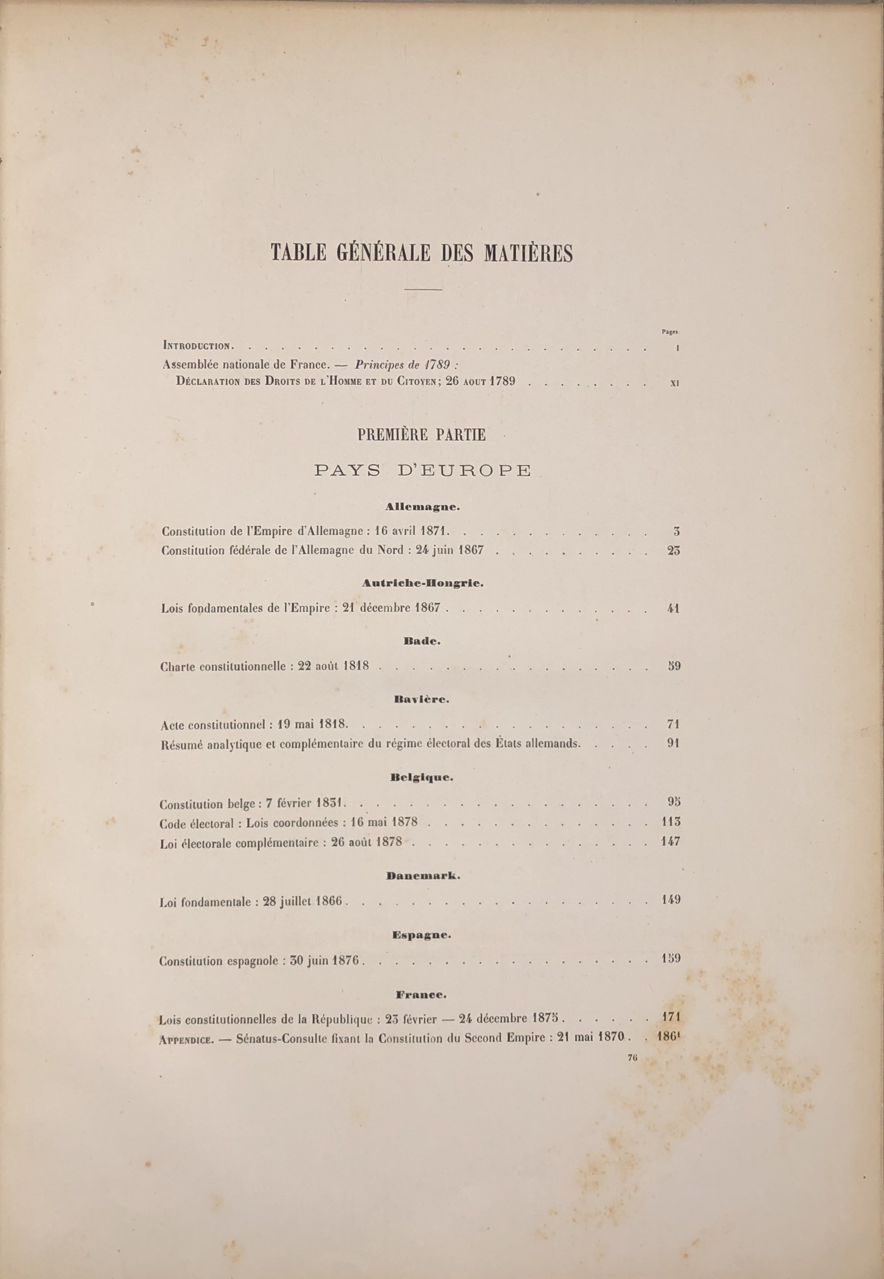 Les Constitutions de tous les pays civilises recueillies, mises en ordre et annotee