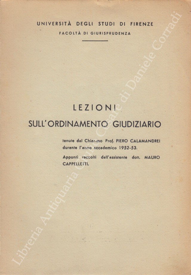 Lezioni sull'ordinamento giudiziario tenute dal Chiar.mo Prof. Piero Calamandrei durante l'anno accademico 1952-53. Appunti raccolti dall'assistente dott. Mauro Cappelletti