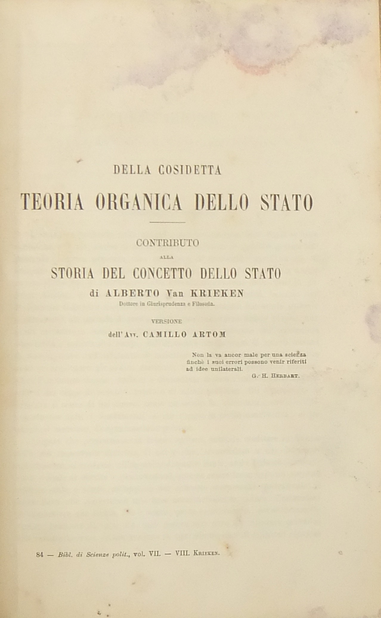 Brunialti A. - Freeman E.A. - Brie S. - Bahr O. - Ahrens E. - Humboldt G.D.- Laboulaye E. - Leroy-Beaulieu P. - Gneist R. - Krieken A.