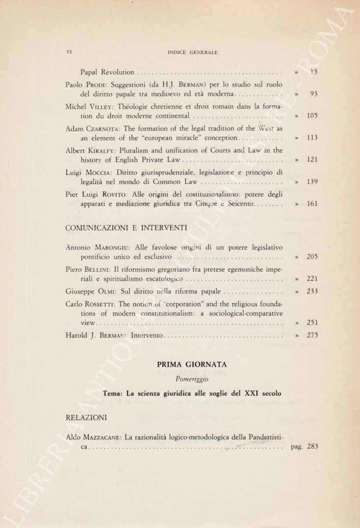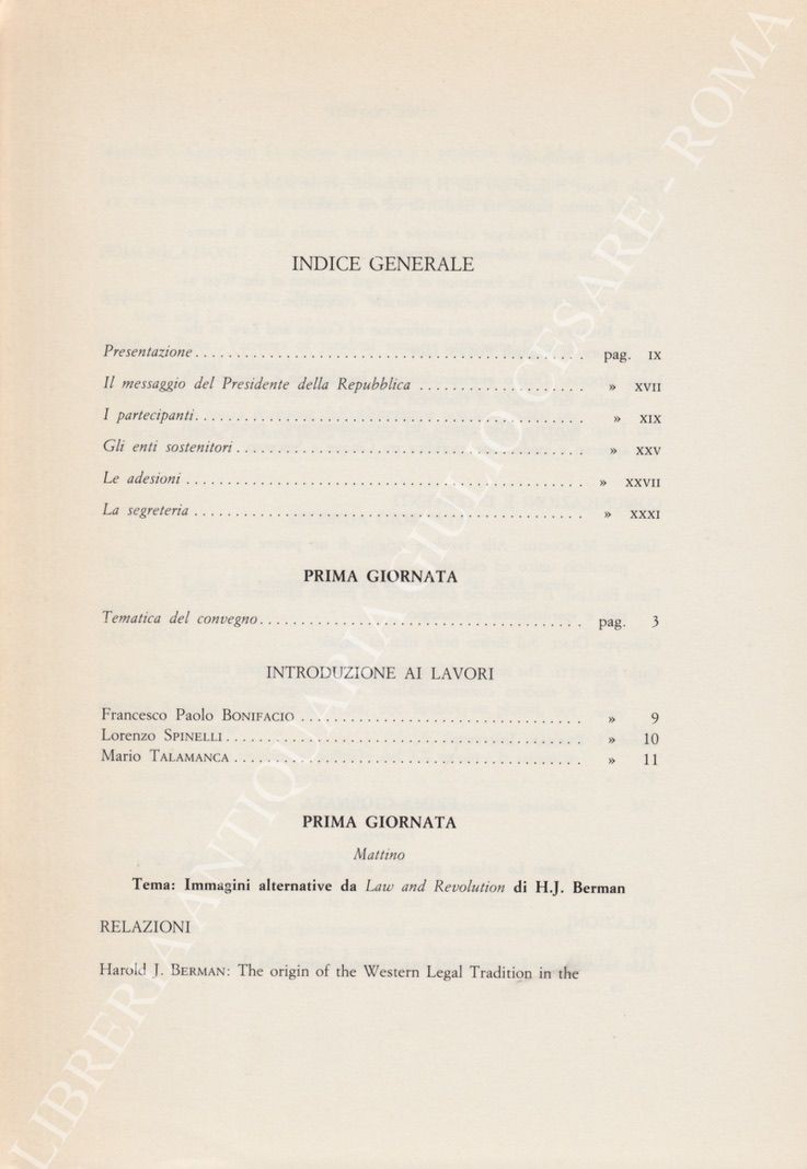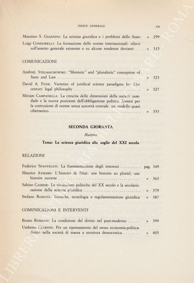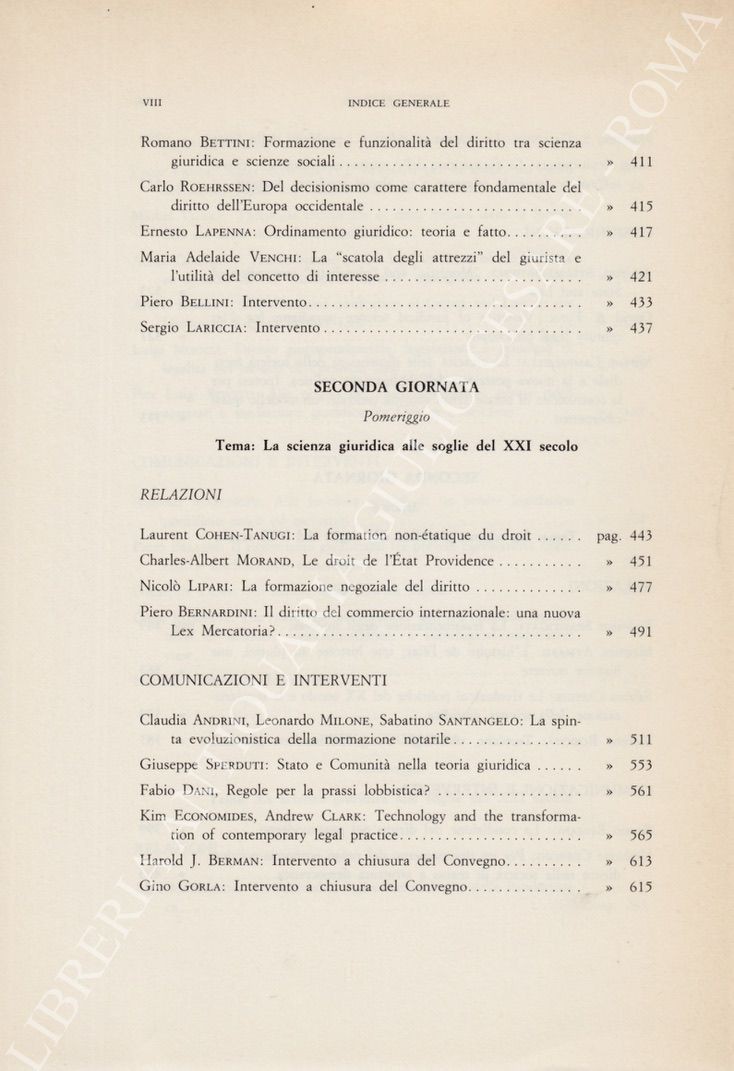 Scritti di Aymard, Andrini, Bellini, Berman, Bernardini, Bettini, Bonifacio, Campanella, Cassese, Cerroni, Cohen Tanugi, Condorelli, Czarnota, Dani, EconomidesFunk, Giannini, Gorla, Kiralfy, Lapenna, Lariccia, Lipari, Marangiu, Mazzacane, Moccia, Morand, Olmi, Prodi, Rodotà , Roehrssen, Romano, Rossetti, Rovito, Spantigati, Sperduti, Spinelli, Stelmachowski, Talamanca, Venchi, Villey
