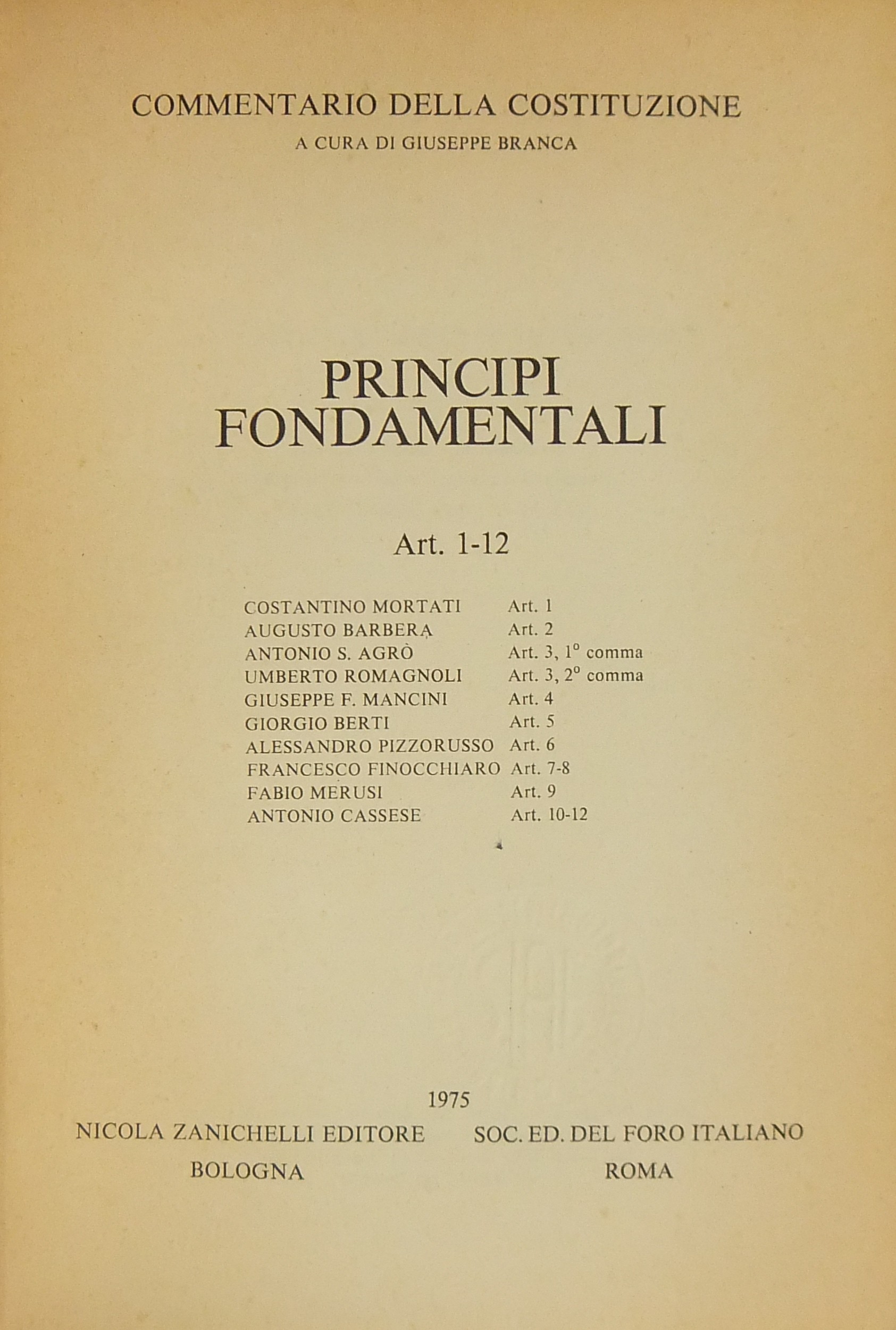 Mortati C. - Barbera A. - Agrò A.S. - Romagnoli U. - Mancini G.F. - Berti G. - Pizzorusso A. - Finocchiaro F. - Merusi F. - Cassese A.