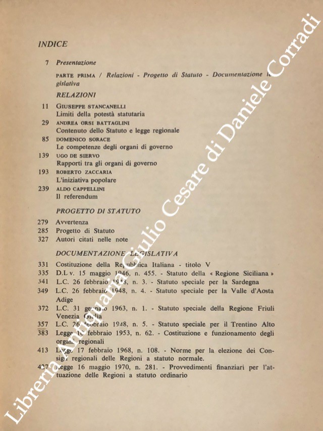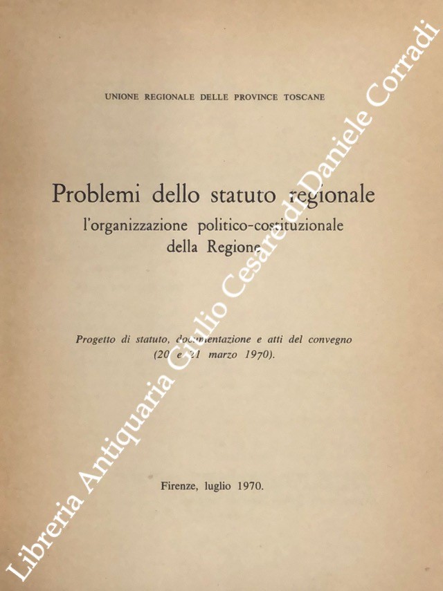 Problemi dello statuto regionale l'organizzazione politico-costituzionale della Regione. Progetto di statuto. documentazione e atti del convegno (20 e 21 marzo 1970)