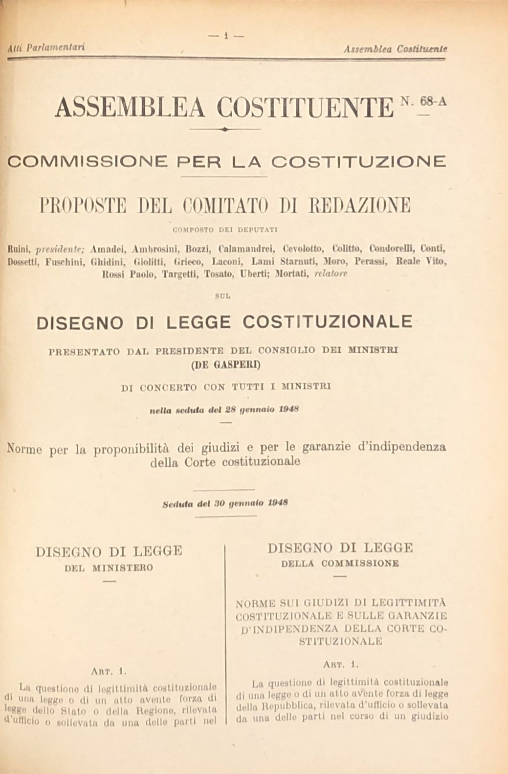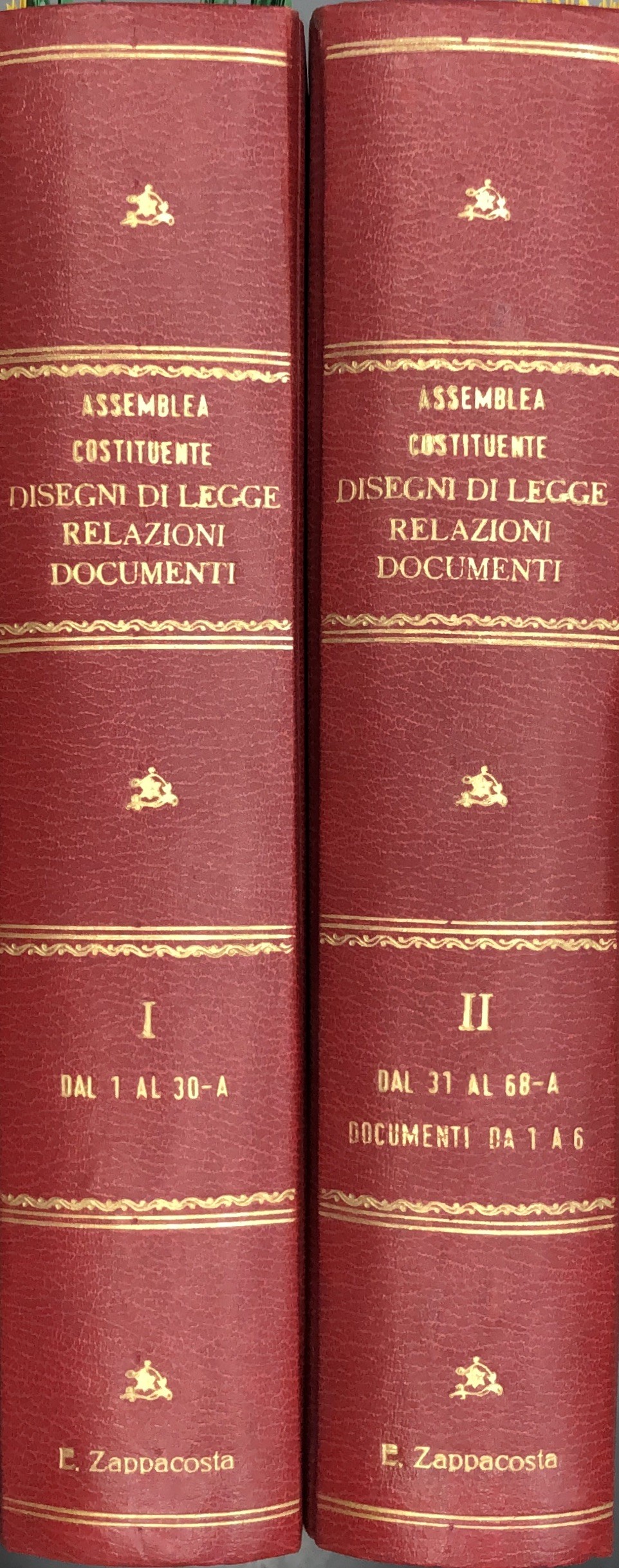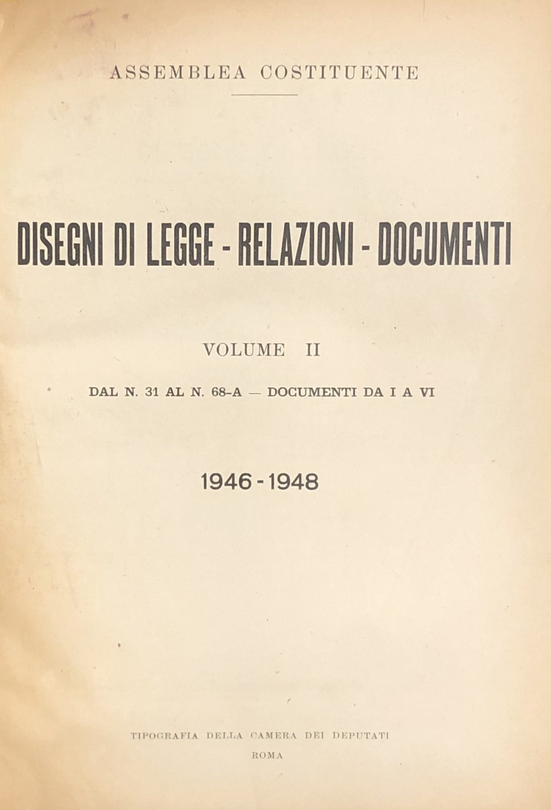 Progetto di Costituzione - Disegni di Legge - Relazioni - Documenti. Vol. I - Dal n. 1 al n. 30-A, 1946-1948; Vol. II - Dal n. 31 al n. 68-A - Documenti da I a VI, 1946-1948