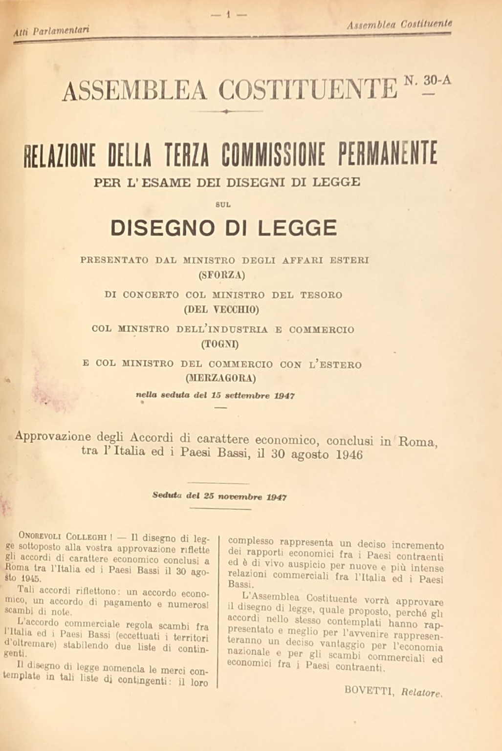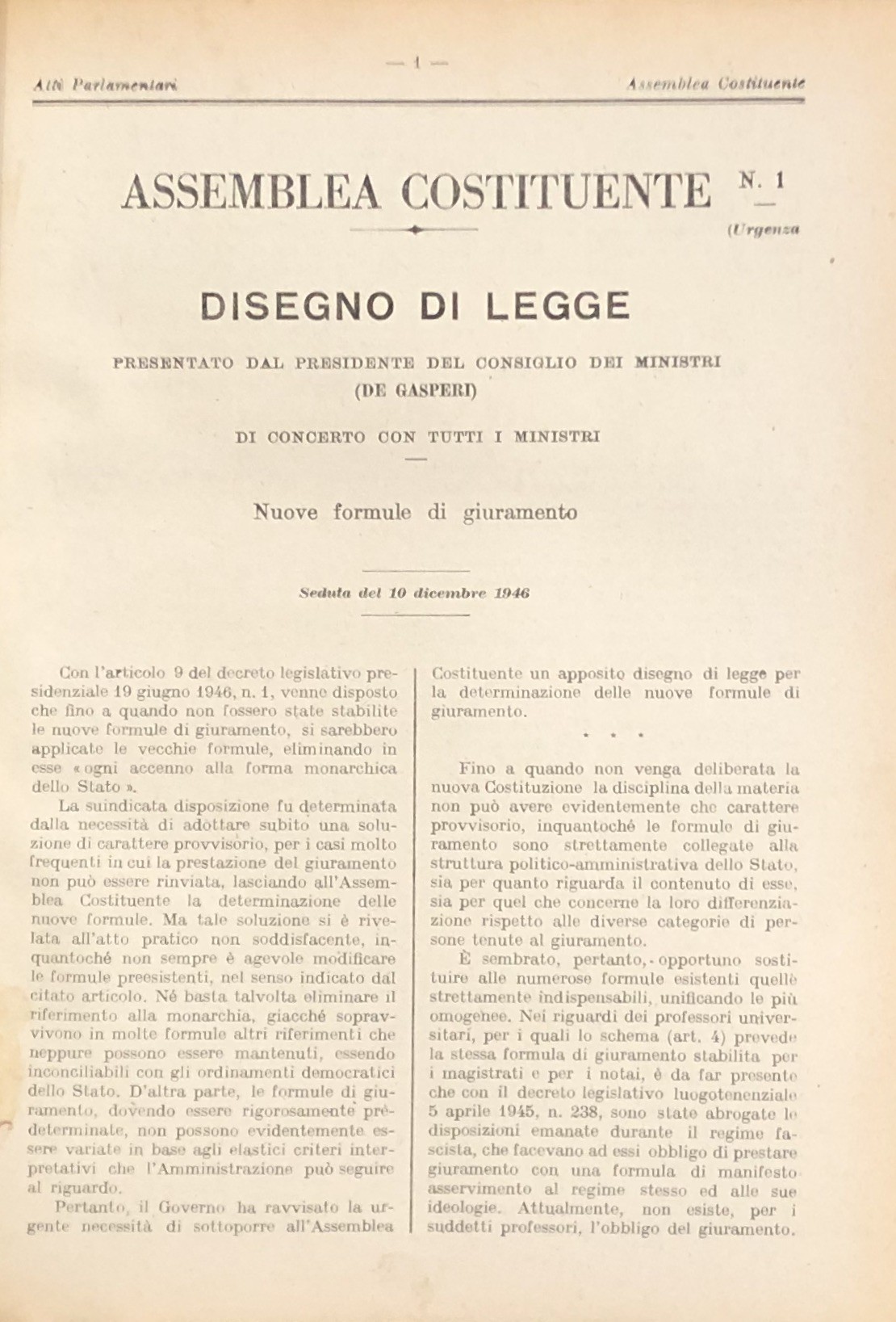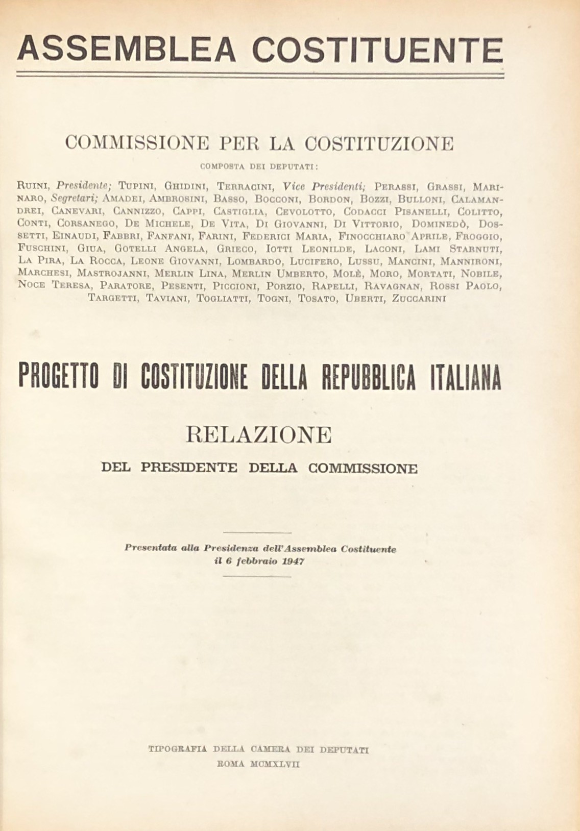 Progetto di Costituzione - Disegni di Legge - Relazioni - Documenti. Vol. I - Dal n. 1 al n. 30-A, 1946-1948; Vol. II - Dal n. 31 al n. 68-A - Documenti da I a VI, 1946-1948