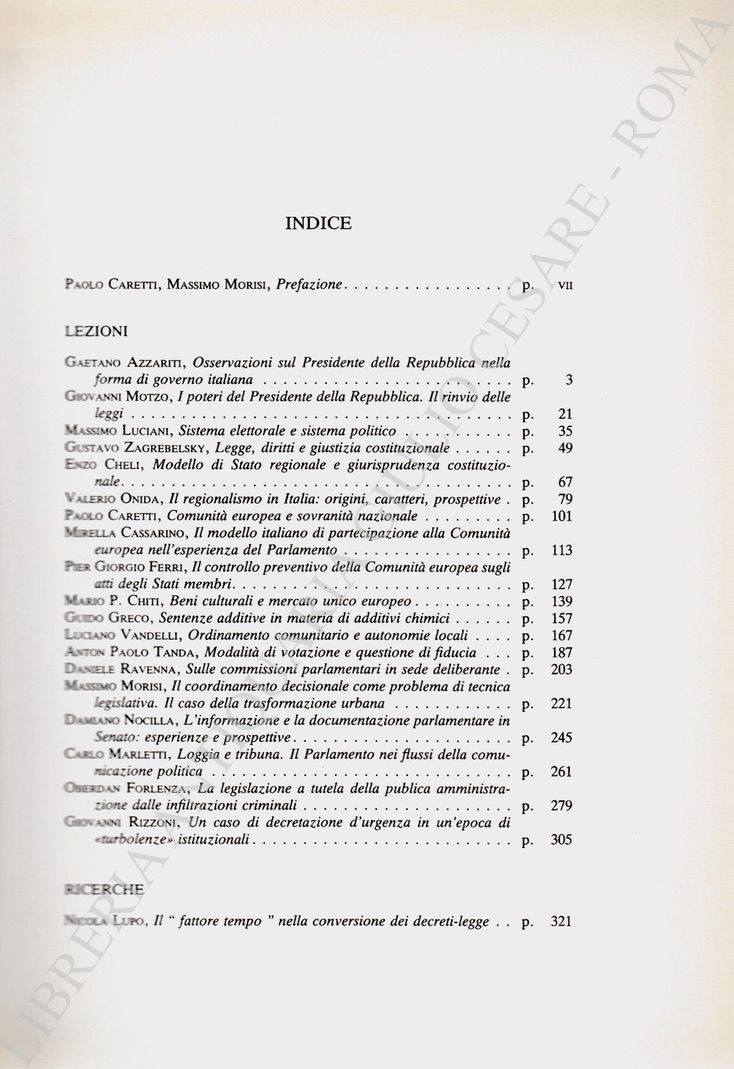 Scritti di: Azzariti, Motzo, Luciani, Zagrebelsky, Cheli, Onida, Caretti, Cassarino, Ferri, Chiti, Greco, Vandelli, Tanda, Ravenna, Morisi, Nocilla, Marletti, Forlenza, Rizzoni, Lupo