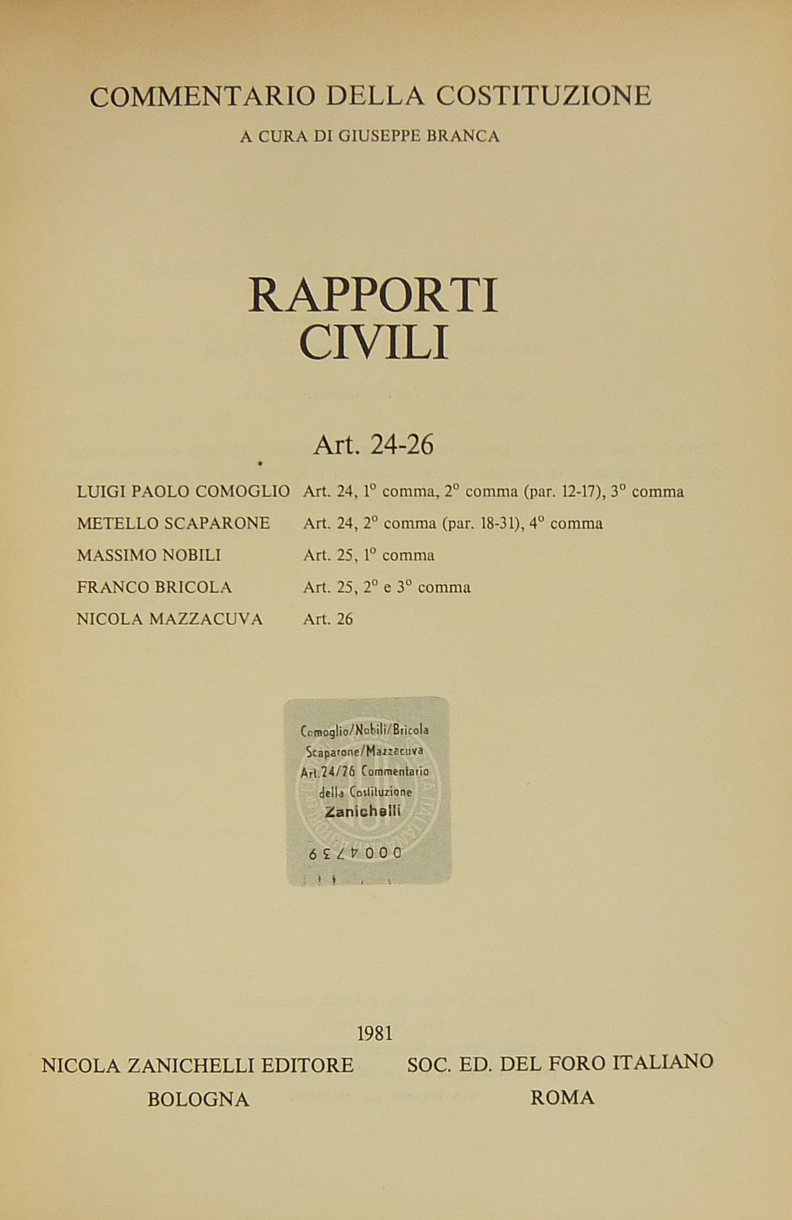 Direttore Collana: Fondato da G. Branca e continuato da A. Pizzorusso