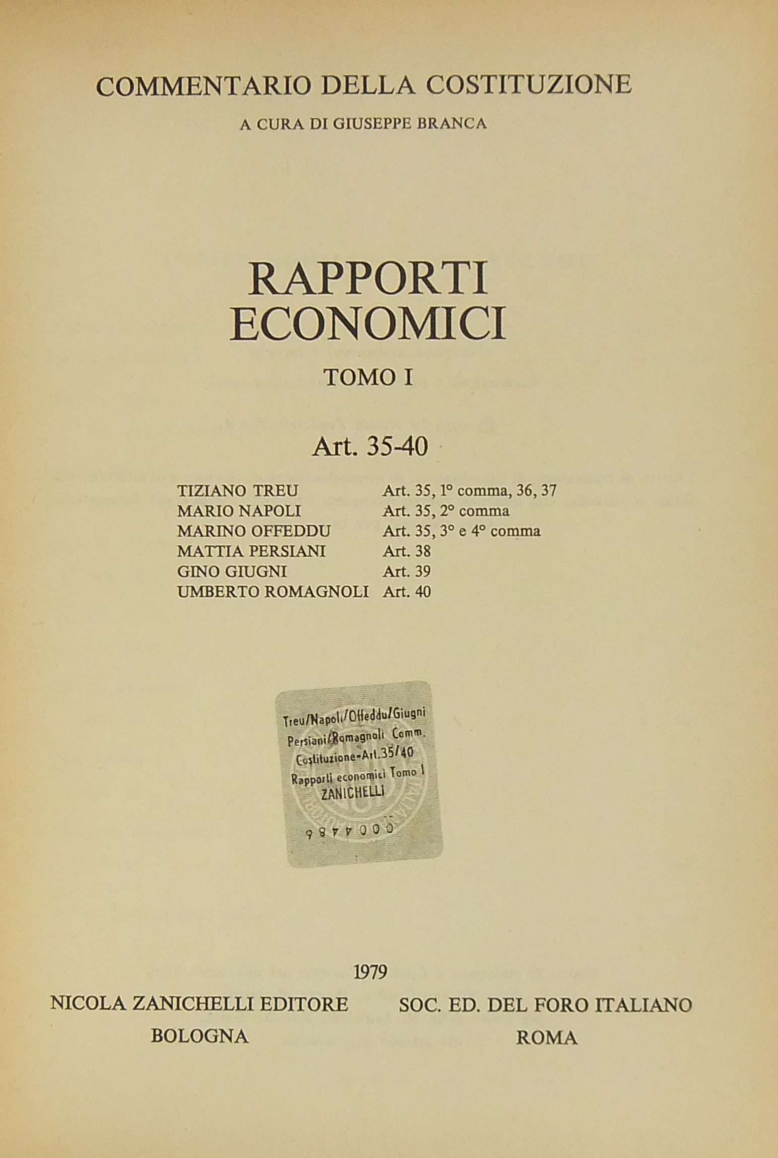 Rapporti economici. Tomo I - Art. 35-40