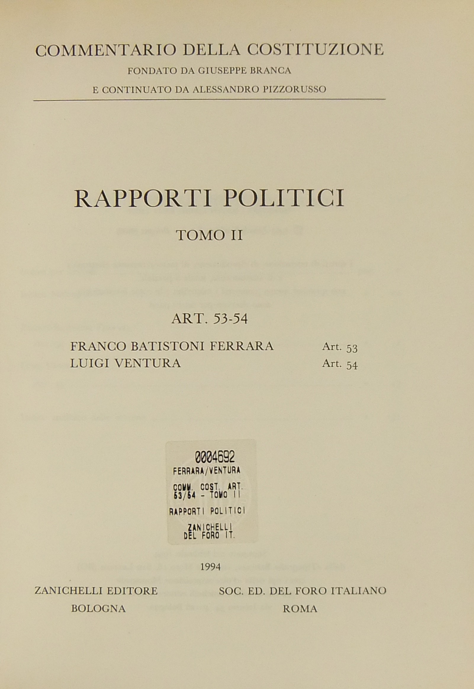 Direttore Collana: Fondato da G. Branca e continuato da A. Pizzorusso