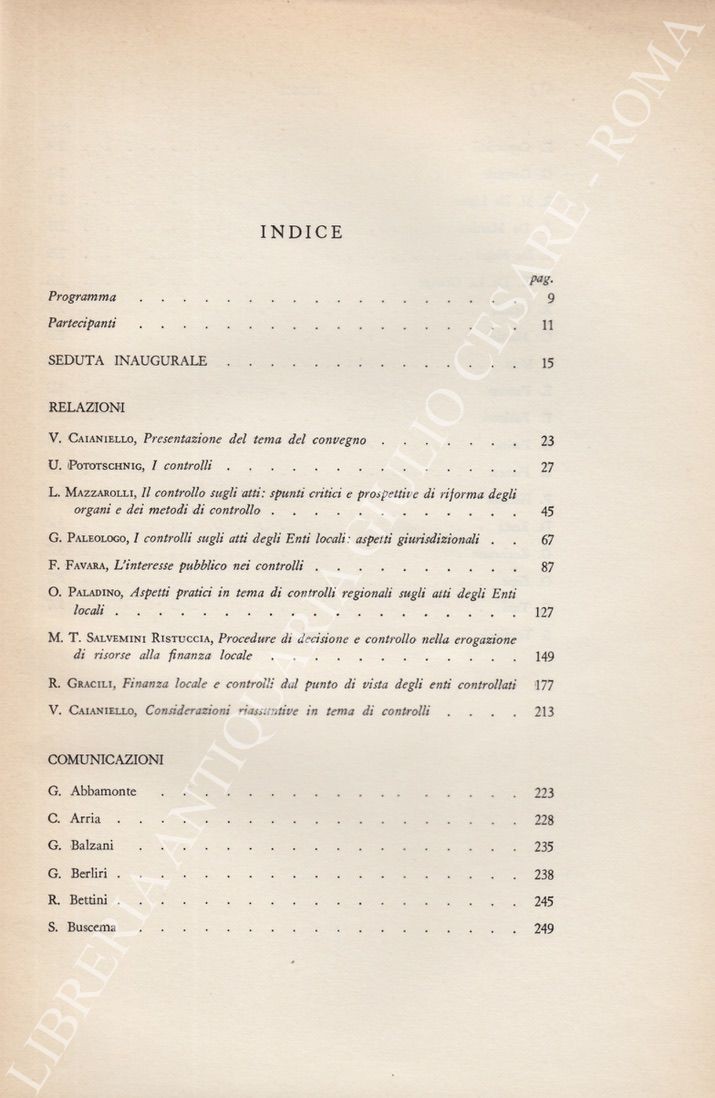 Caianiello V. - Mazzarolli L. - Paleologo G. - Potoschnig U. et alii