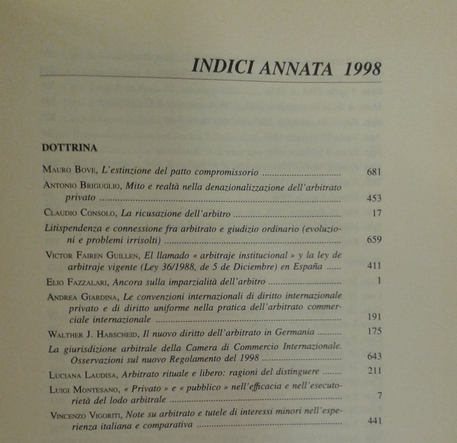 Rivista dell'arbitrato. Diretta da Elio Fazzalari. Annata VIII - 1998