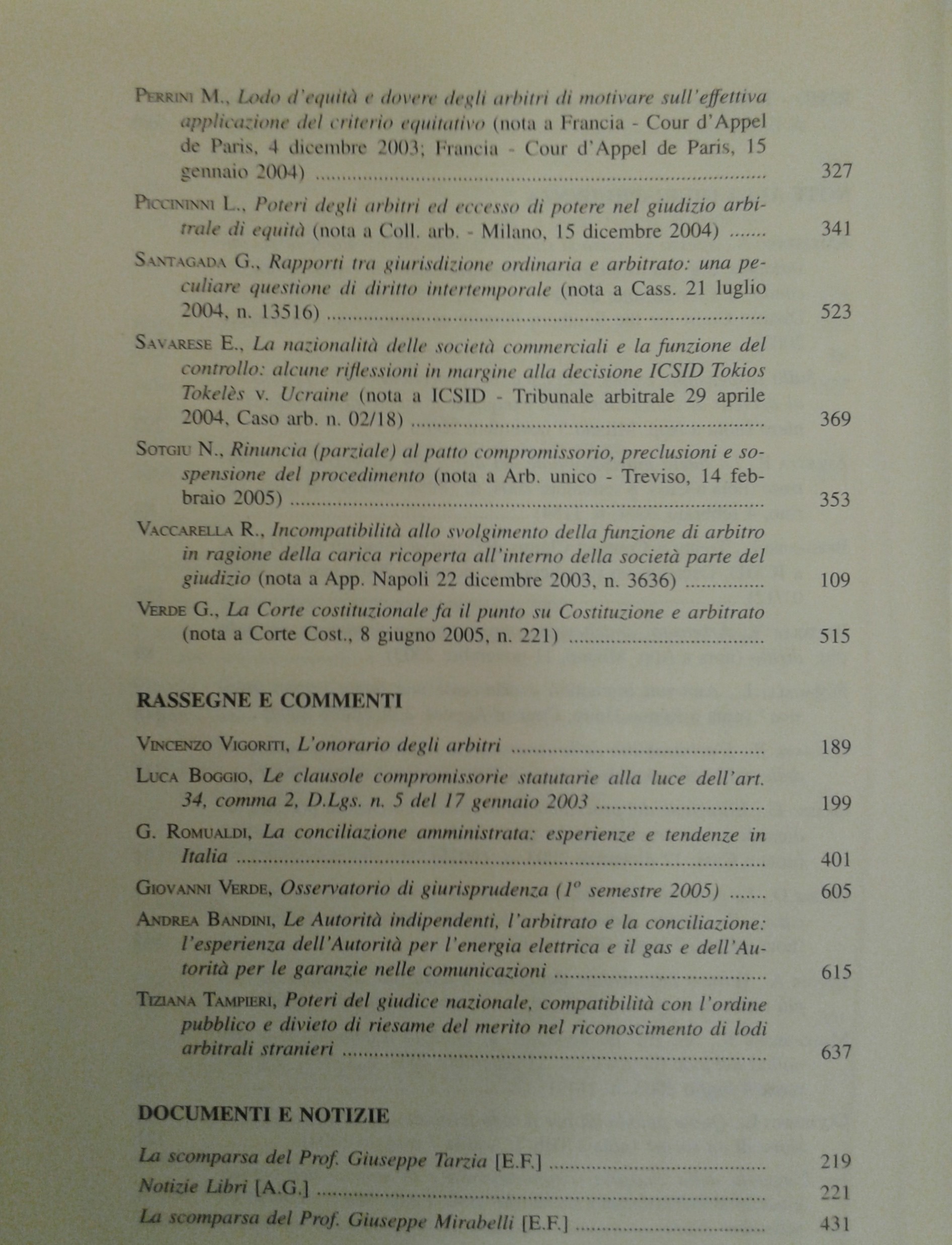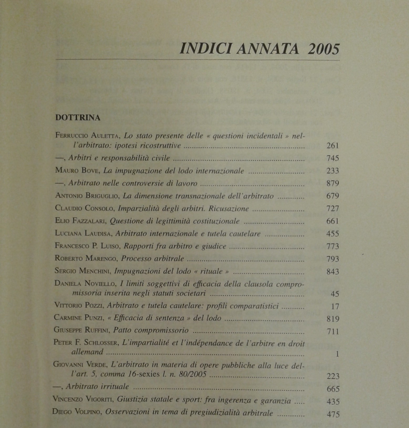 Rivista dell'arbitrato. Diretta da Elio Fazzalari. Annata XV - 2005