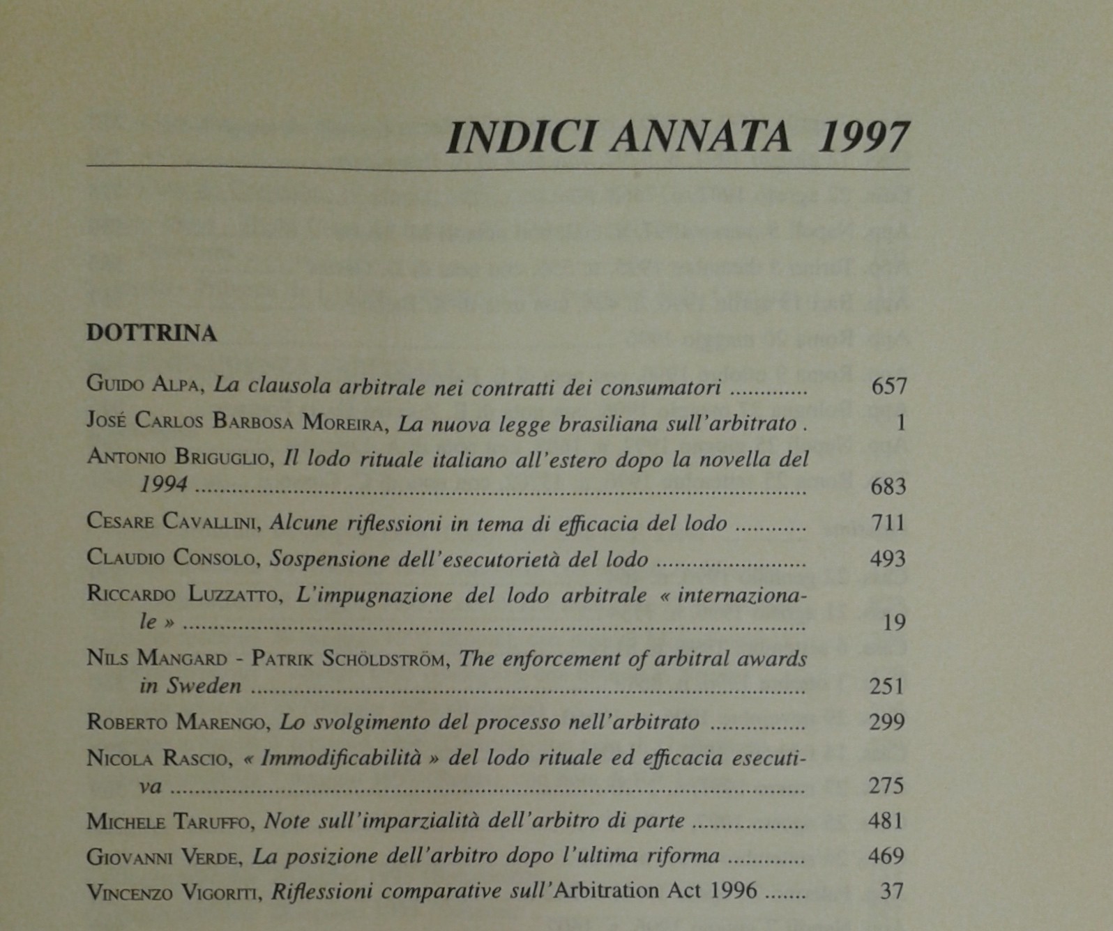 Rivista dell'arbitrato. Diretta da Elio Fazzalari. Annata VII - 1997
