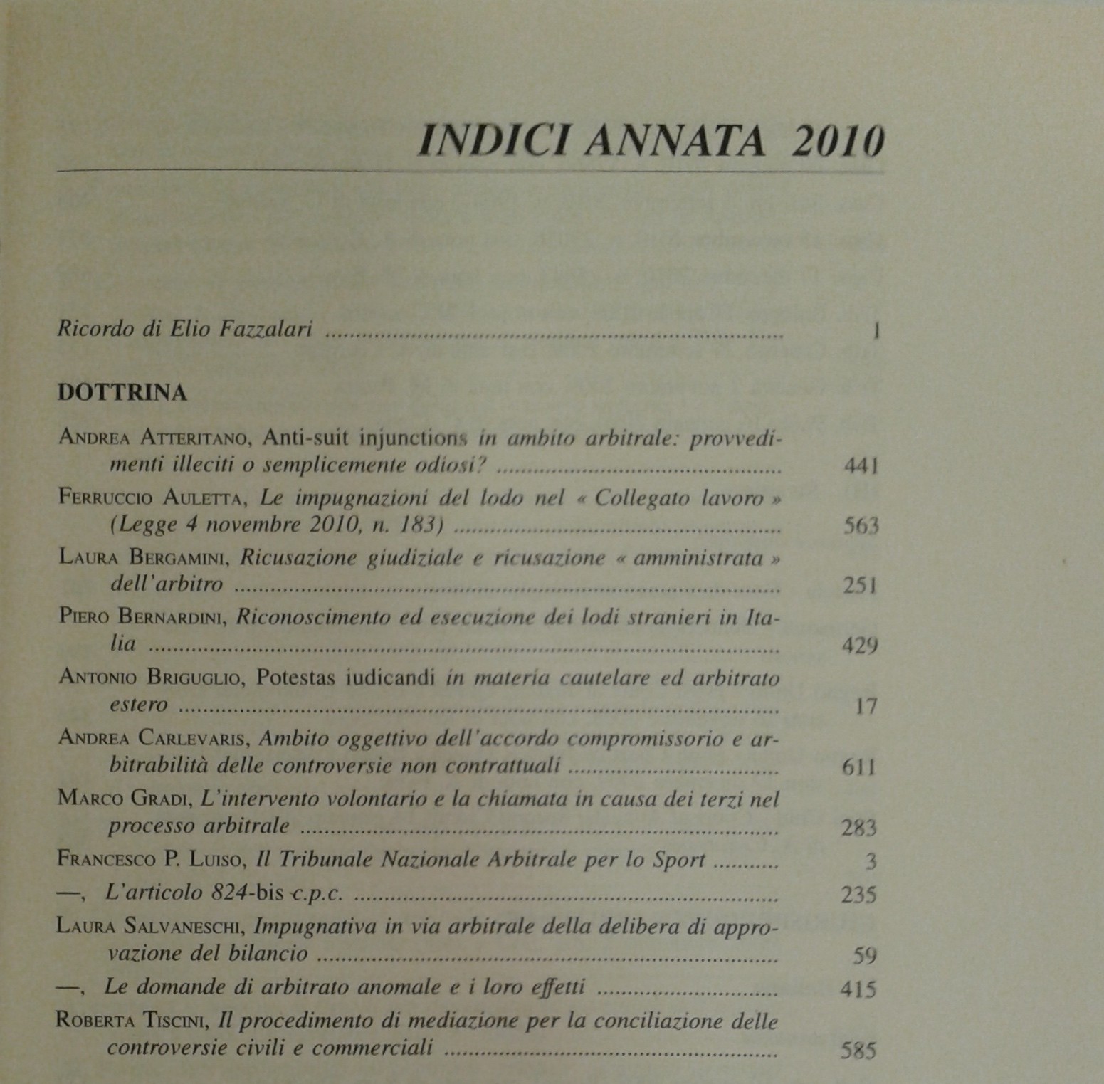 Rivista dell'arbitrato. Diretta da Elio Fazzalari. Annata XX - 2010