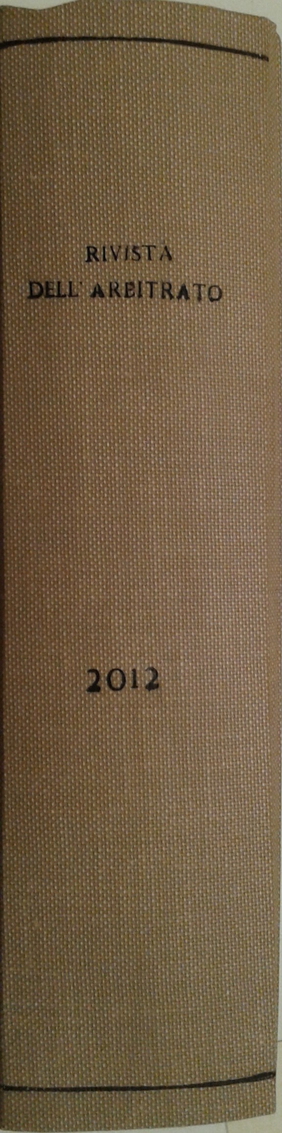 Rivista dell'arbitrato. Fondata da Elio Fazzalari. Diretta da A. Briguglio, G. De Nova, A. Giardina. Annata XXII - 2012