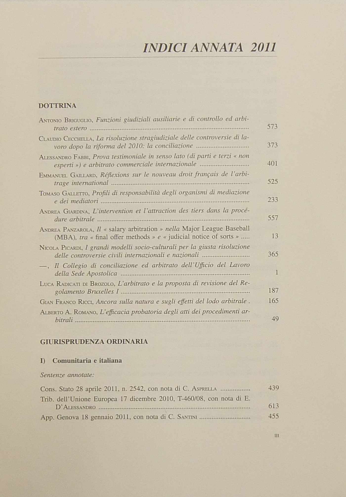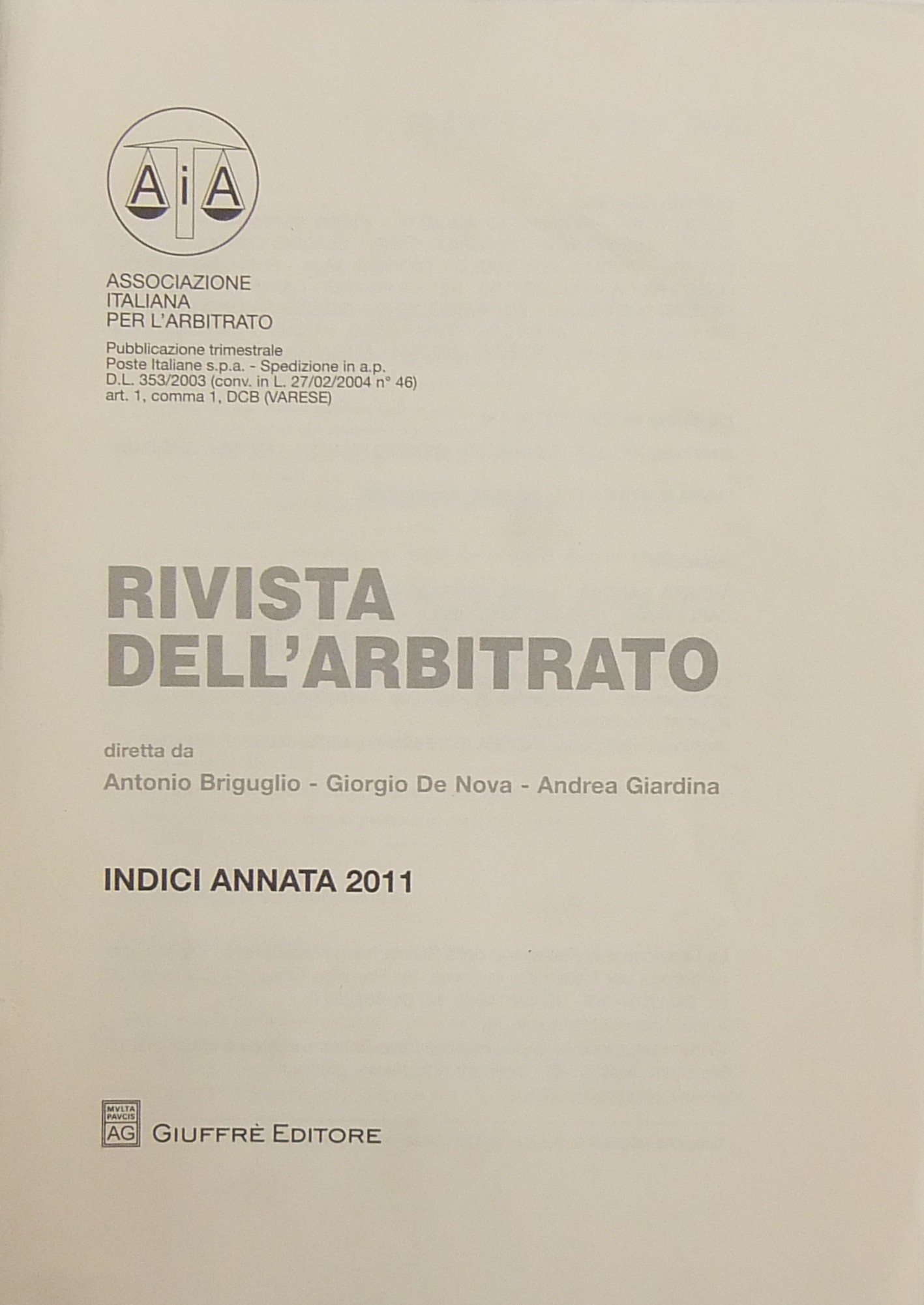 Rivista dell'arbitrato. Fondata da Elio Fazzalari. Diretta da A. Briguglio, G. De Nova, A. Giardina. Annata XXI - 2011