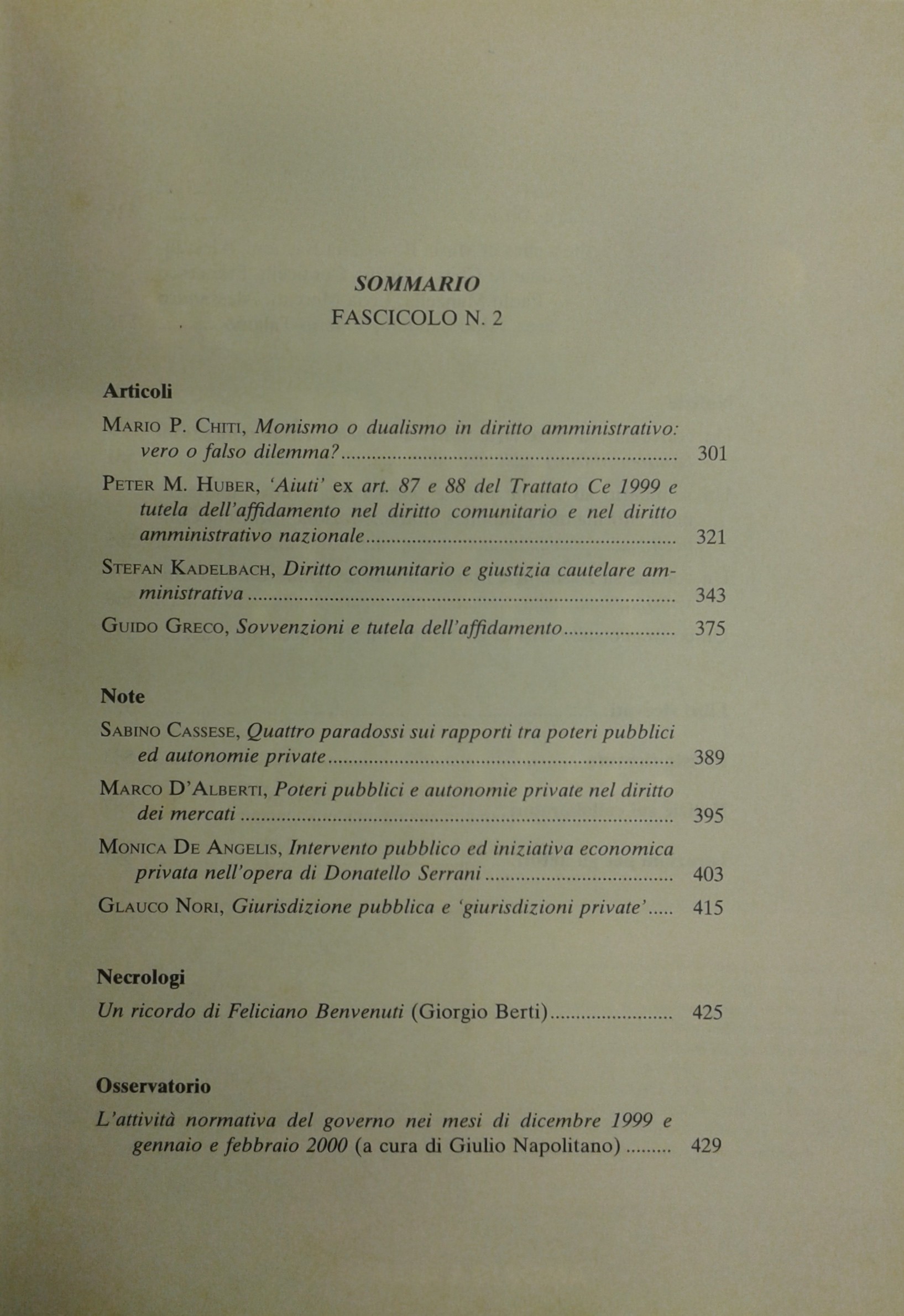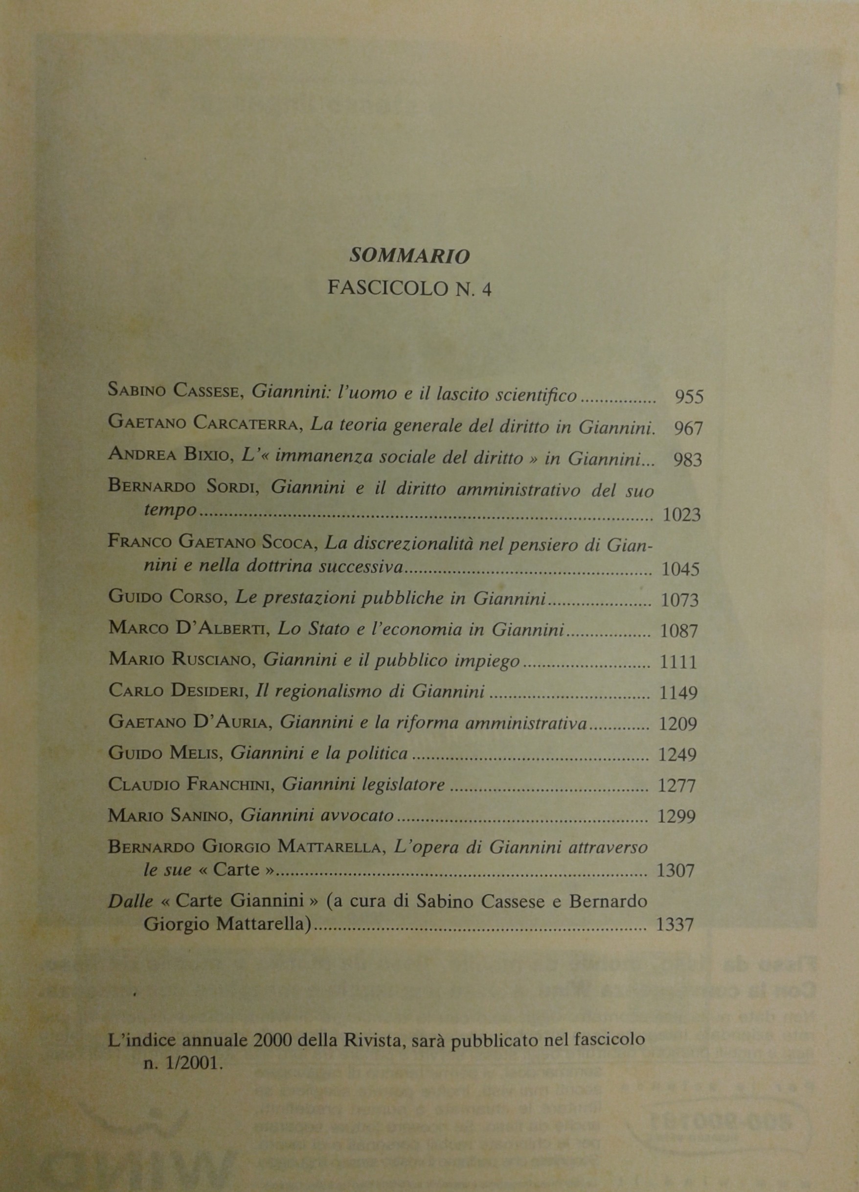Rivista trimestrale di diritto pubblico. Fondata da Guido Zanobini. Diretta da Giovanni Miele e Massimo Severo Giannini. Anno L - 2000
