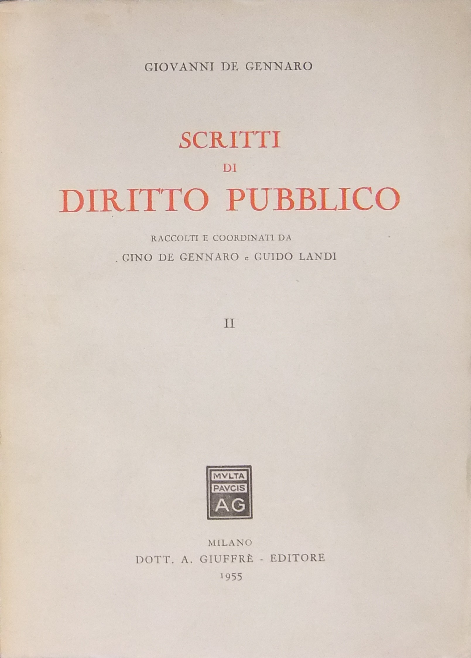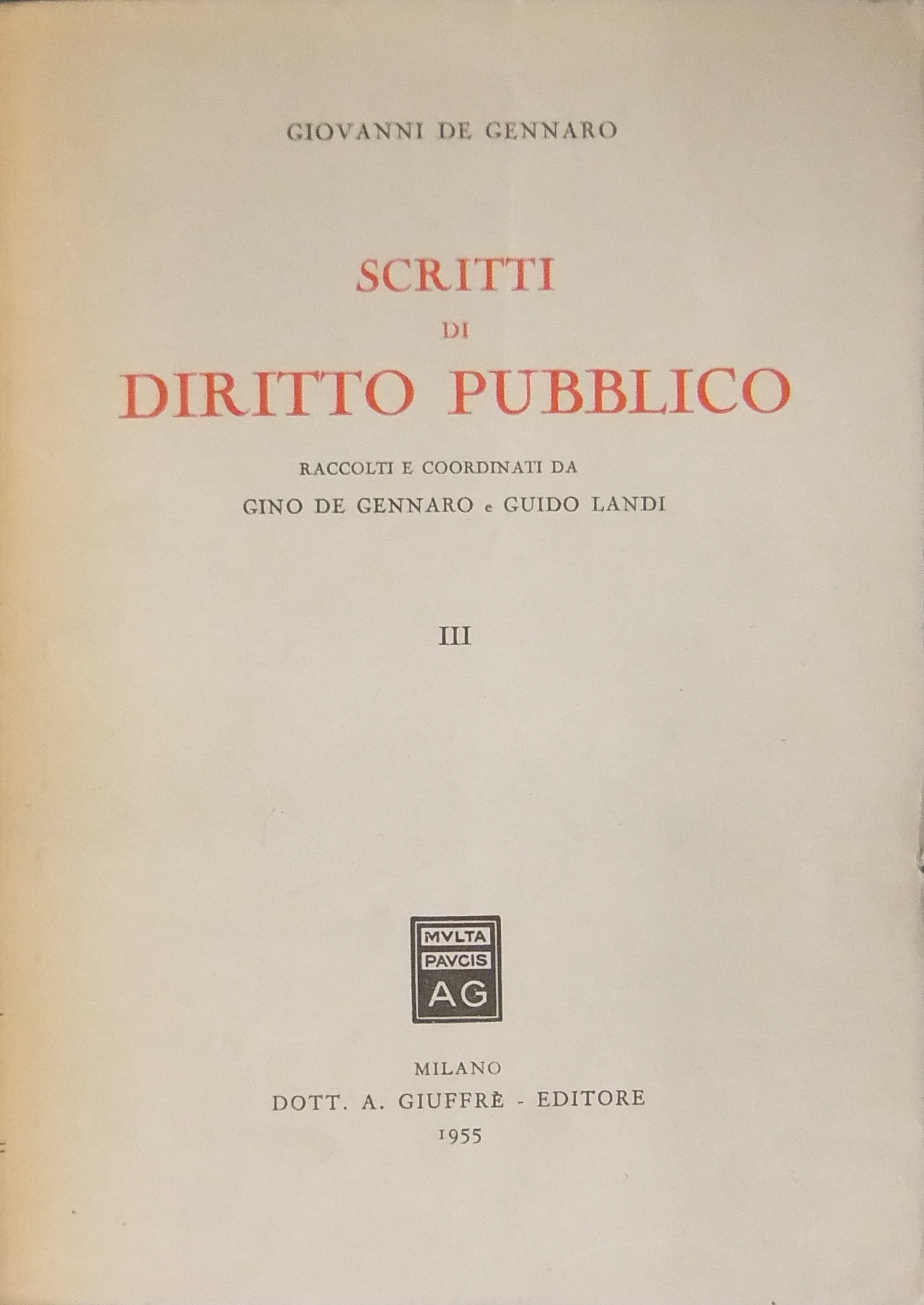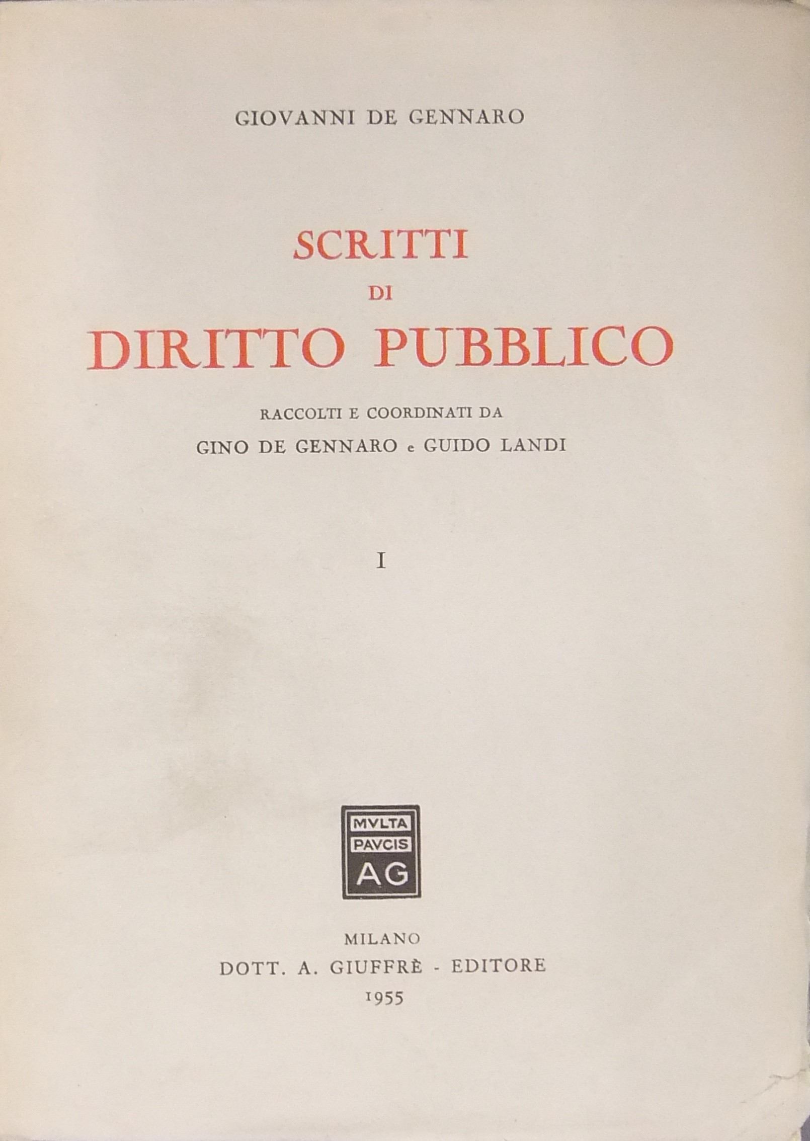 Scritti di diritto pubblico. Raccolti e coordinati da Gino De Gennaro e Guido Landi