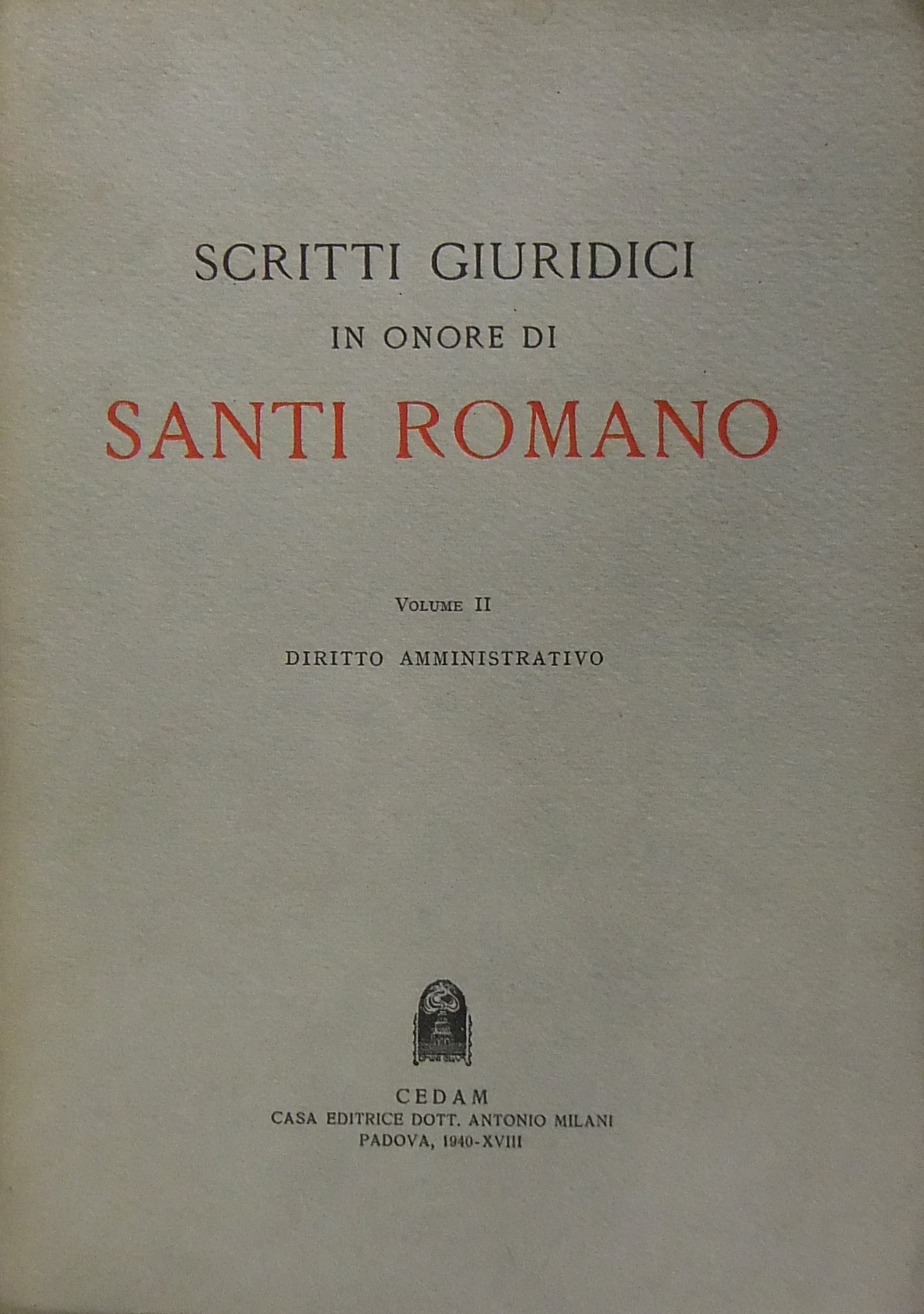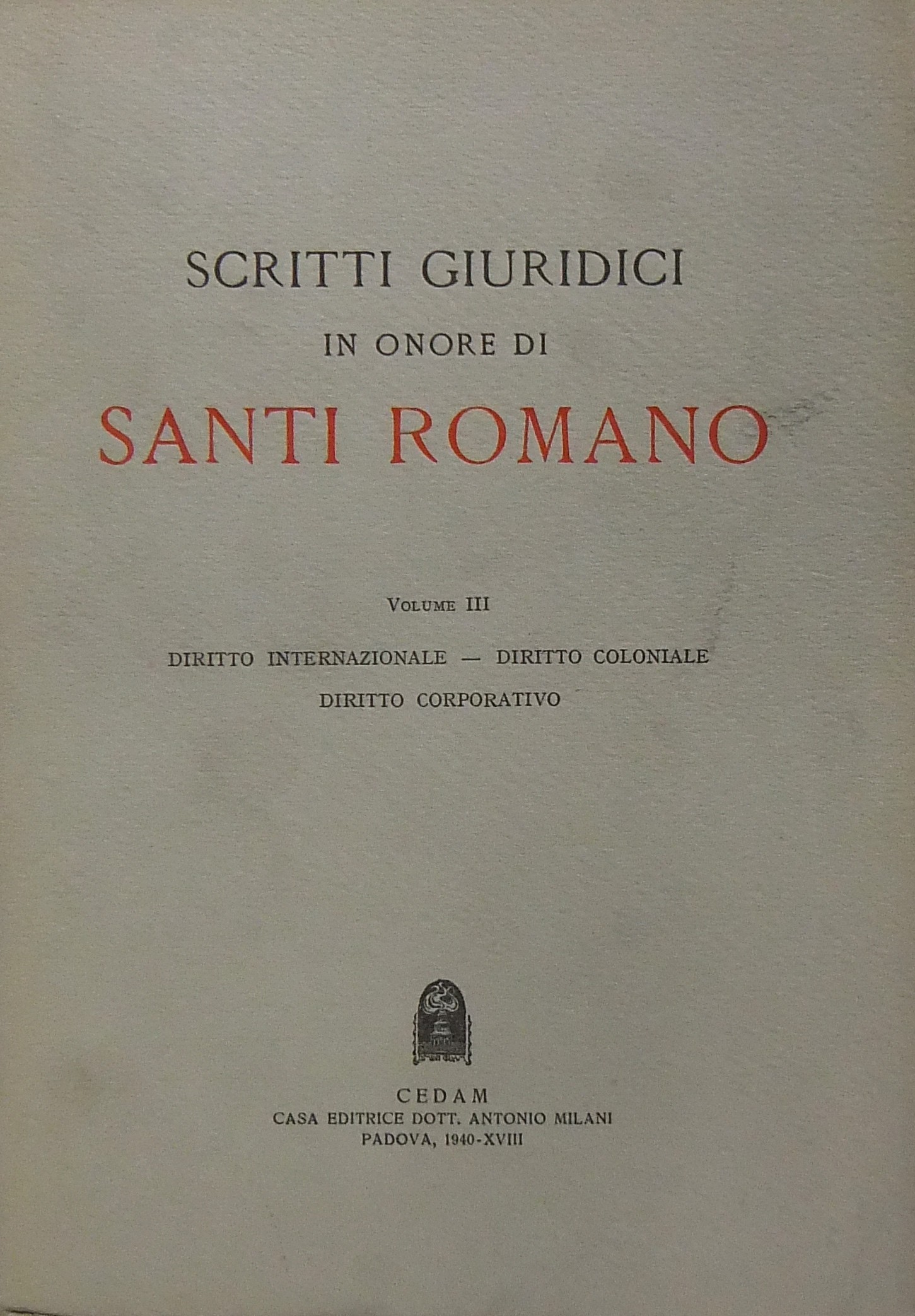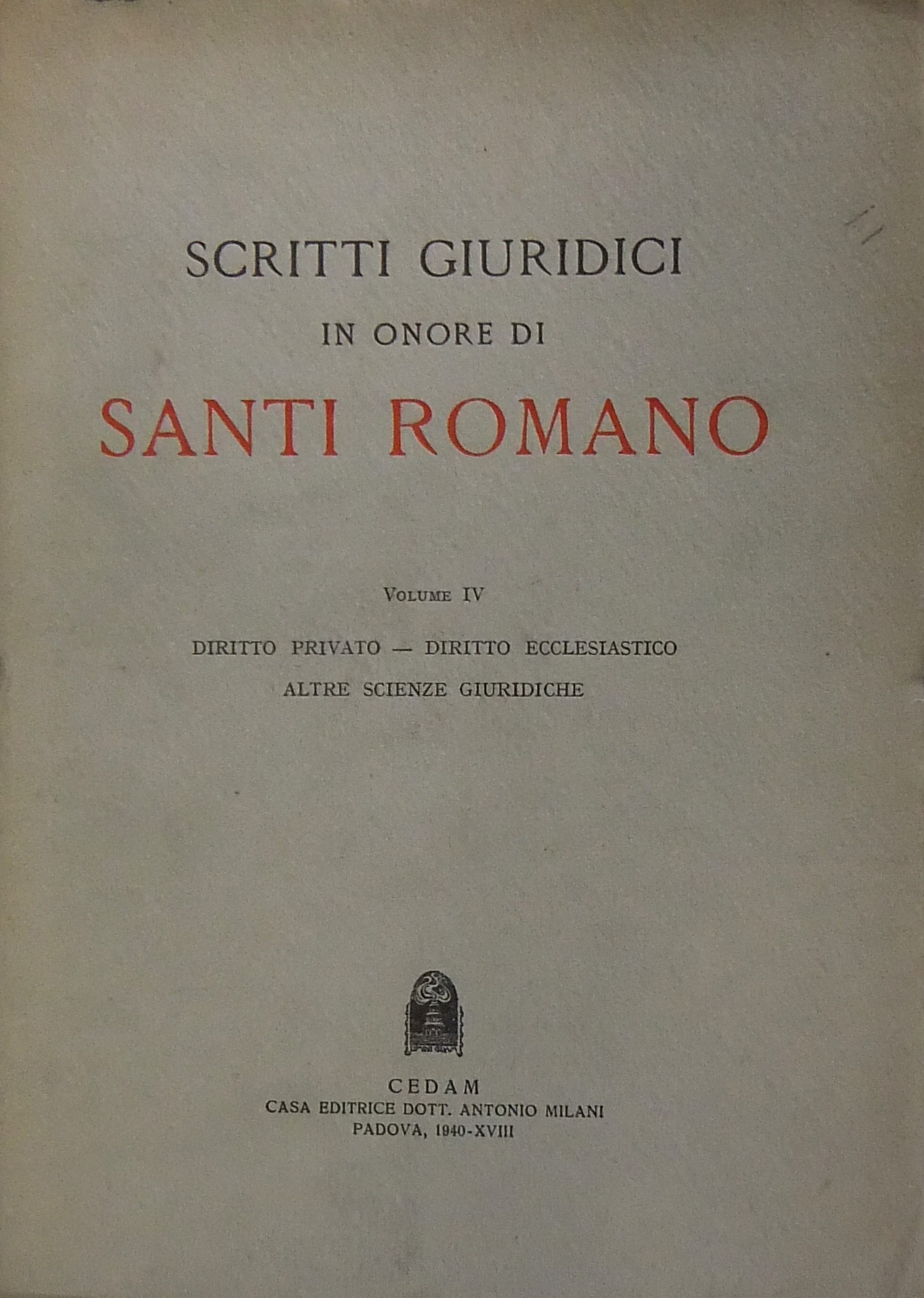 Scritti giuridici in onore di Santi Romano. Vol. I - Filosofia e teoria generale del diritto. Diritto costituzionale. Vol. II - Diritto amministrativo. Vol. III - Diritto internazionale. Diritto coloniale. Diritto corporativo. Vol. IV - Diritto privato. Diritto ecclesiastico. Altre scienze giuridiche