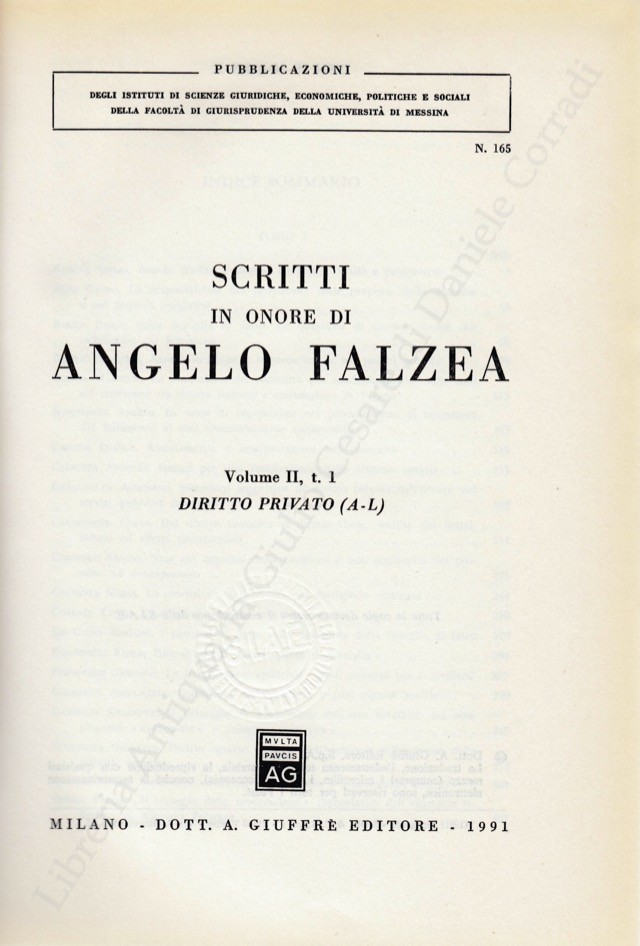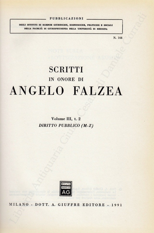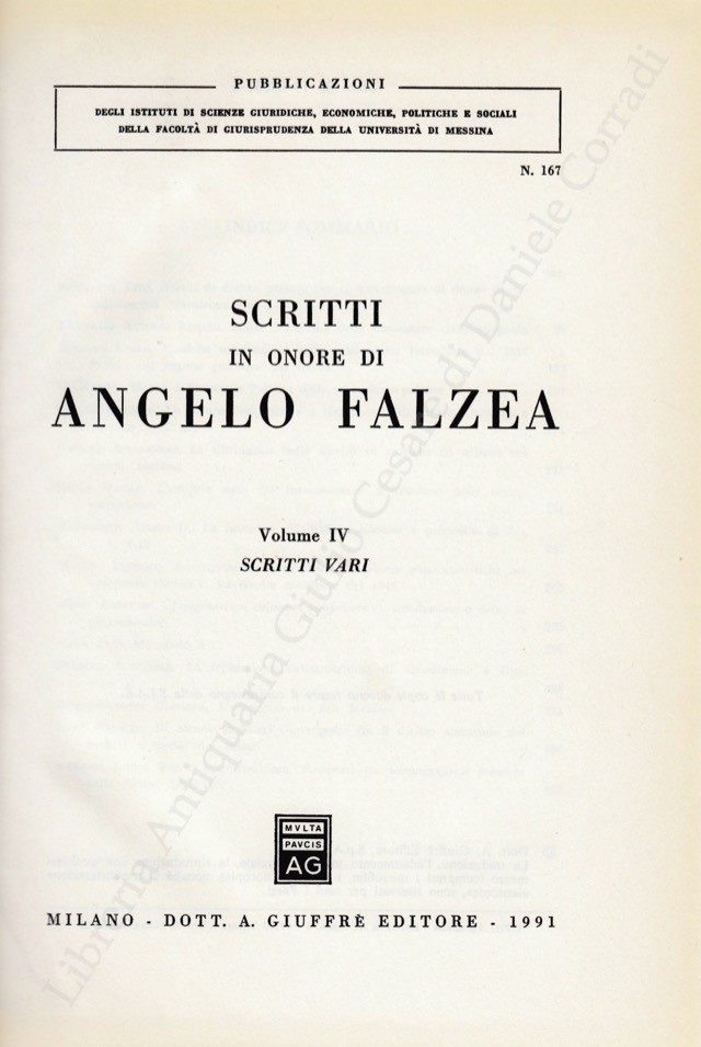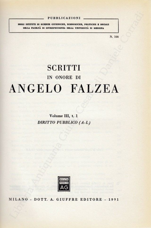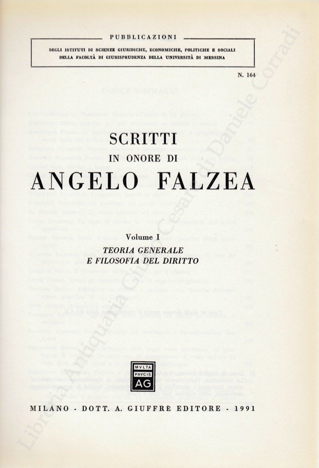 Scritti in onore di Angelo Falzea. Vol. I - Teoria generale e filosofia del diritto; Vol. II,1 - Diritto privato (A-L); Vol. II,2 - Diritto privato (M-Z); Vol. III,1 - Diritto pubblico (A-L); Vol. III,2 - Diritto pubblico (M-Z); Vol. IV - Scritti vari