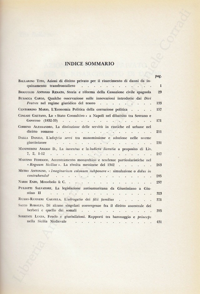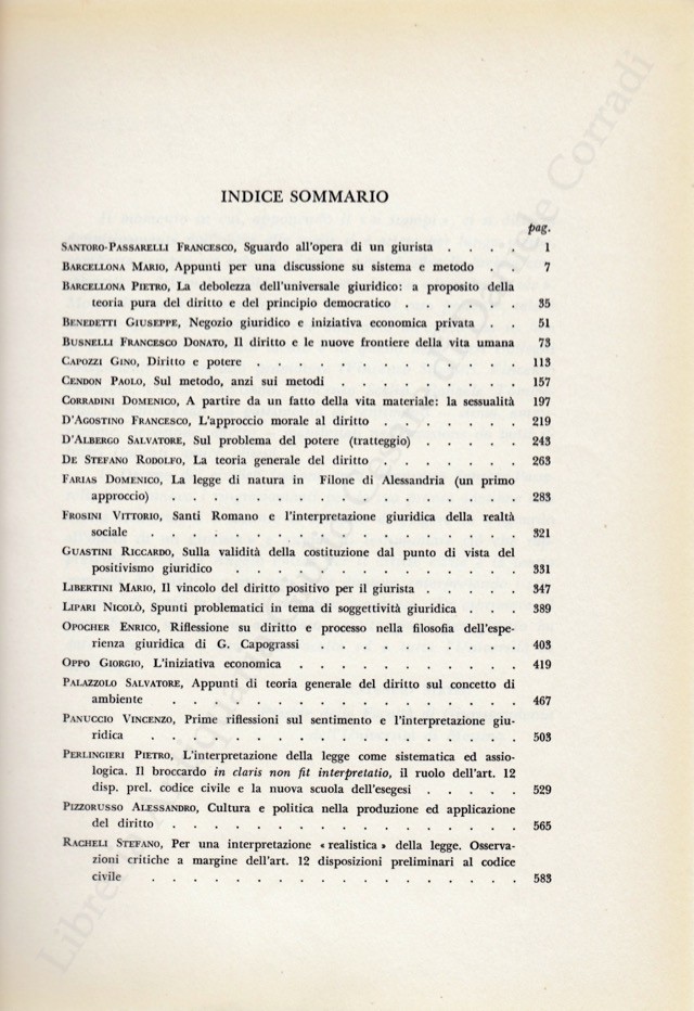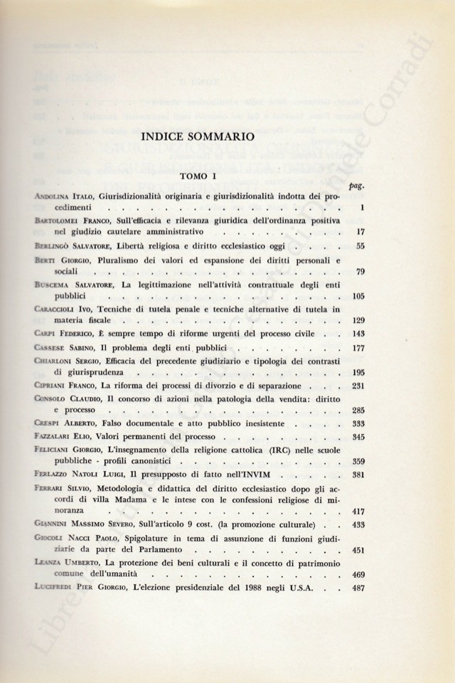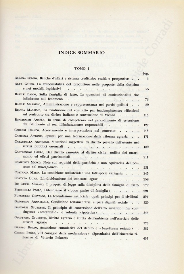L’opera è completa in 4 volumi in 6 tomi. Scritti di: Alagna S., Alpa G., Andolina I., Ballarino T., Barcellona M., Barcellona P., Barile P., Bartolomei F., Basile M., Benedetti G., Berlingò S., Berti G., Bianca C.M., Bonsignori A., Briguglio A.R., Busacca C., Buscema S., Busnelli F.D., Capozzi G., Caraccioli I., Carpi F., Carresi F., Carrozza A., Cassese S., Castronovo C., Cataudella A., Cendon P., Centorrino C., Chiarloni S., Cingari G., Cipriani F., Comporti M., Consolo C., Corbino A., Corradini D., Costanza M., Costato L., Crespi A., D’Agostino F., D’Albergo S., Dalla D., De Cupis A., De Stefano R., Farias D., Fazzalari E., Feliciani G., Ferlazzo Natoli L., Ferrari S., Forchielli P., Frosini V., Furgiuele G., Galoppini A., Gandolfi G., Giannini M.S., Giocoli Nacci P., Giuffrida G., Grasso B., Grossi P., Guastini R., Inzitari B., La Torre A., Leanza U., Libertini M., Lipari N., Lucifredi P.G., Luminoso A., Manfredini A., Marini G., Martino F., Mastropaolo F., Metro A., Minervini G., Montesano L., Moscati E., Musselli L., Nardi E., Nicotina G., Opocher E., Oppo G., Ottaviano V., Palazzo A., Palazzolo S., Panuccio V., Patti S., Pera G., Perlingieri P., Piazza G., Picardi N., Pizzorusso A., Puliatti S., Punzi C., Quadri E., Racheli S., Ragusa Maggiore G., Rescigno P., Ricci E.F., Ruggeri A., Russo Ruggeri C., Sacco R., Santoro Passarelli F., Scalisi V., Sepe O., Sorrenti L., Spada P., Stanzione P., Taruffo M., Tarzia G., Teresi F., Tommaseo F., Tommasini R., Trabucchi A., Tranchina G., Trimarchi F., Veneziani B., Vitucci P., Zangari G.