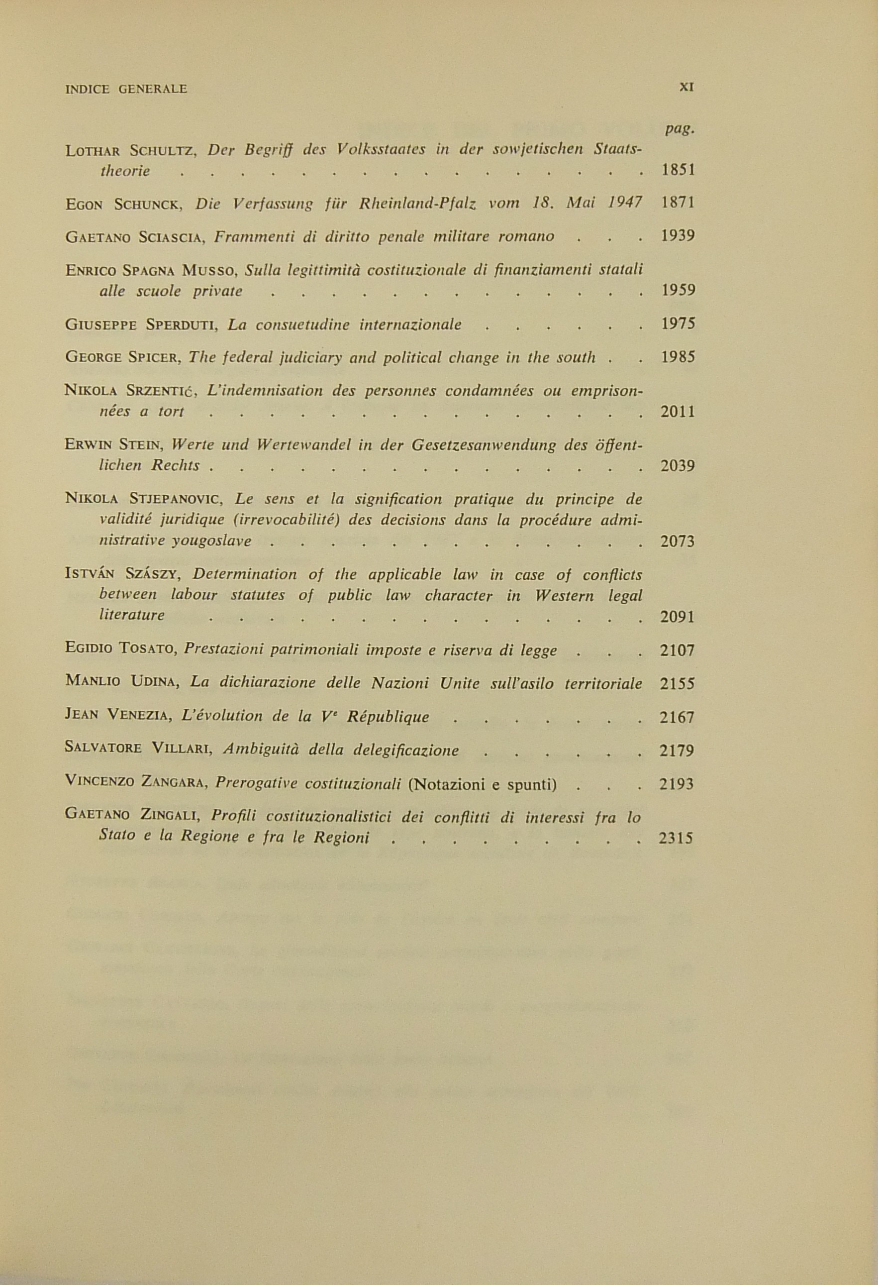 Ritratto fotografico di Ambrosini ad inizio del primo volume. Scritti di: C. Aikin, B. Arkin, Albanese, G. Ambrosini, Arndt, Baccari, Bastid, Battaglini, Bidart Campos, S. Bradeano, Branca, Cardahi, Castiglione, S. Cattaneo, Chiarelli, Ciprotti, G.A. Costanzo, V.Crisafulli, Cyprian, Czachòrski, D'Addio, De Briey, De Mattei, Denkovic, Djordjevic, Durante, Ehrlich, Fragali, Friedrich, Friesenhahn, V. Frosini, Galizia, Geiger, Giglio, Herzog, Hidayatullah, A. Ionasco, T. Ionasco, Jedryka, Jemolo, Kapur, Kastari, Katzarov, Kersell, Klinghoffer, Kuchenhoff, Langrod, Lavagna, Leanza, Leibholz, Leisner, Lessona, Luchaire, Marongiu, Maunz, Melichar, Modugno, Nadelmann, G. Negri, Nicolò, Odent, Oestreich, Palazzoli, Paresce, Pensovecchio Li Bassi, Pergolesi, Perticone, Petrilli, Pfeifer, O.H. Phillips, Pinto, Piola, Ramaswami, Rowatt, Rozmaryn, Rupp, A.M. Sandulli, Sawer, Scheffler, F.B. Schick, L. Schultz, Schunck, G. Sciascia, Spagna Musso, Sperduti, Spicer, Srzentic, Stein, Stjepanovic, Szaszy, Tosato, Udina, Venezia, Villari, Zangara, Zingali.