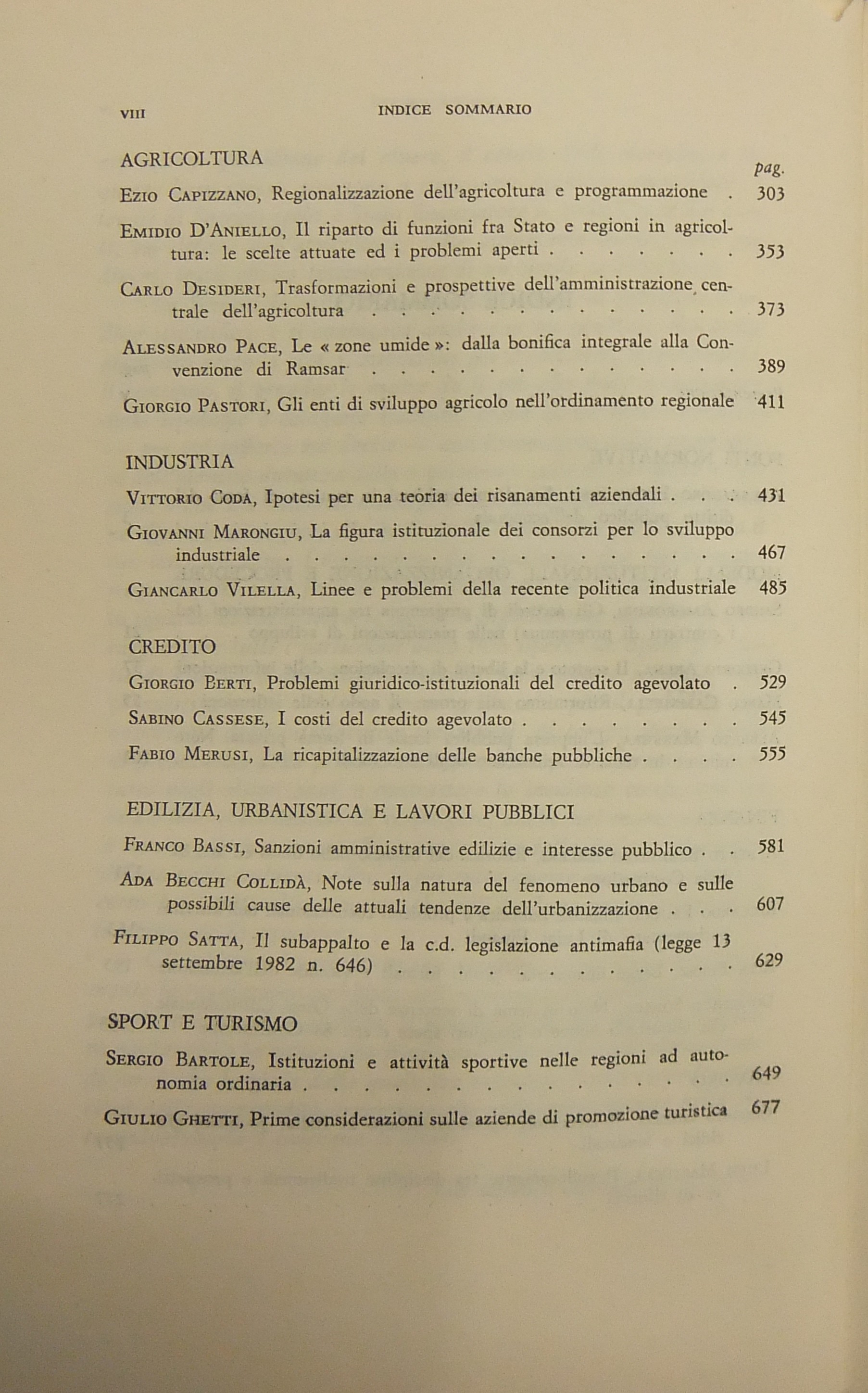 Scritti di: Arena, Amorosino, Barettoni Arleri, Bartole, Bassi, Becchi Collidà, Berti, Cammelli, Capizzano, Cassese S., Coda, D’Aniello, Desideri, Faucci, Ghetti, Ghezzi, Mariucci, Marongiu, Massera, Merusi, Pace, Pastori, Perez, Pizzorusso, Satta F., Sorace, Vilella