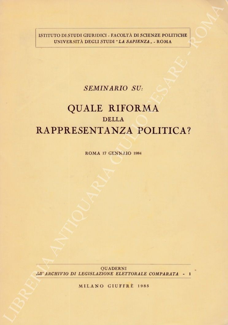 Seminario su: quale riforma della rappresentanza politica? Roma 17 gennaio 1984