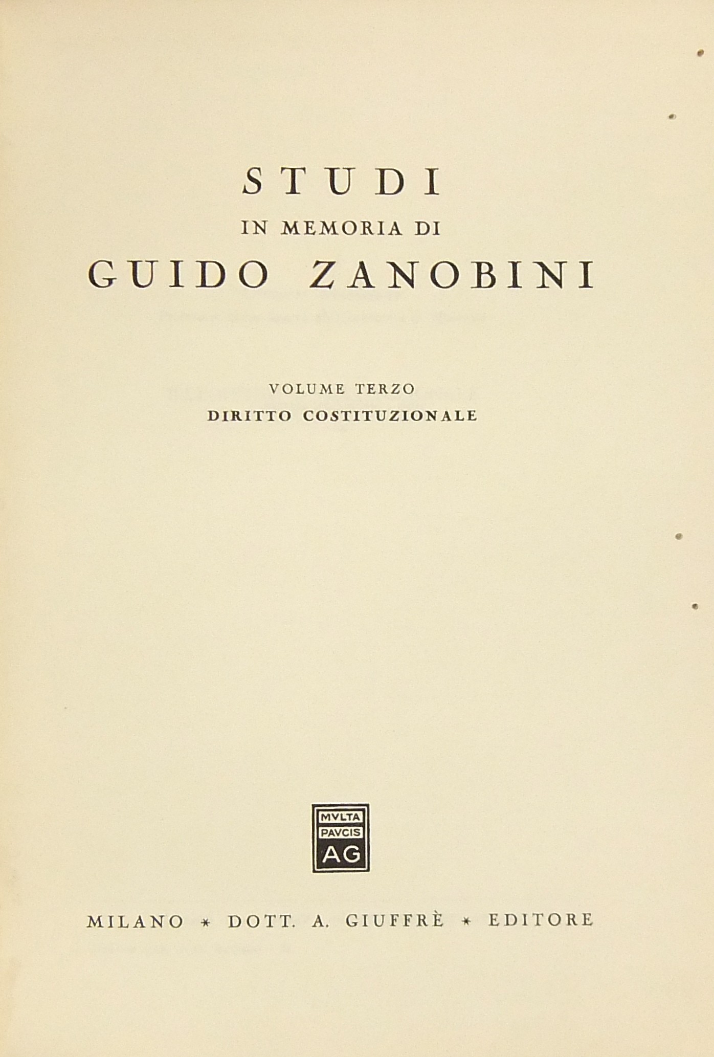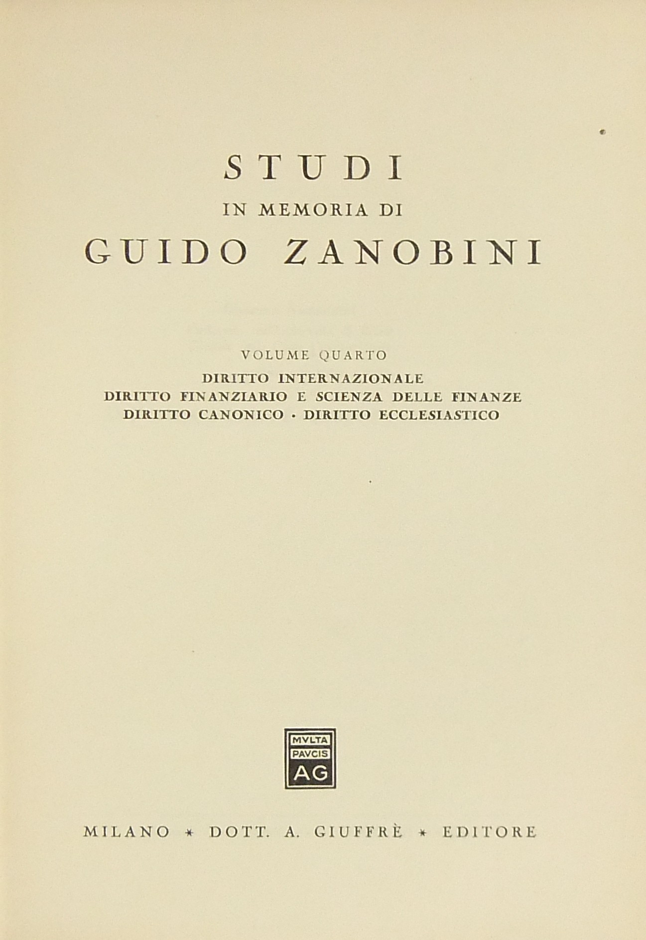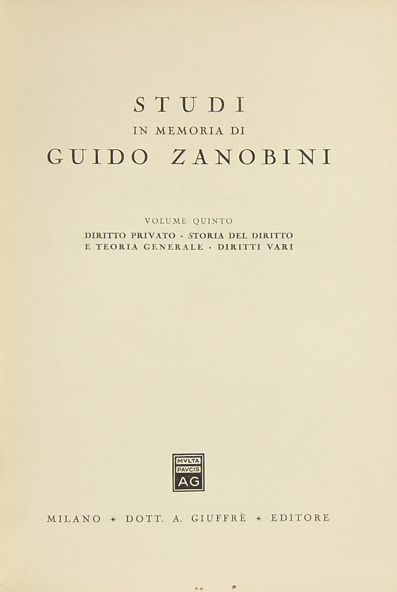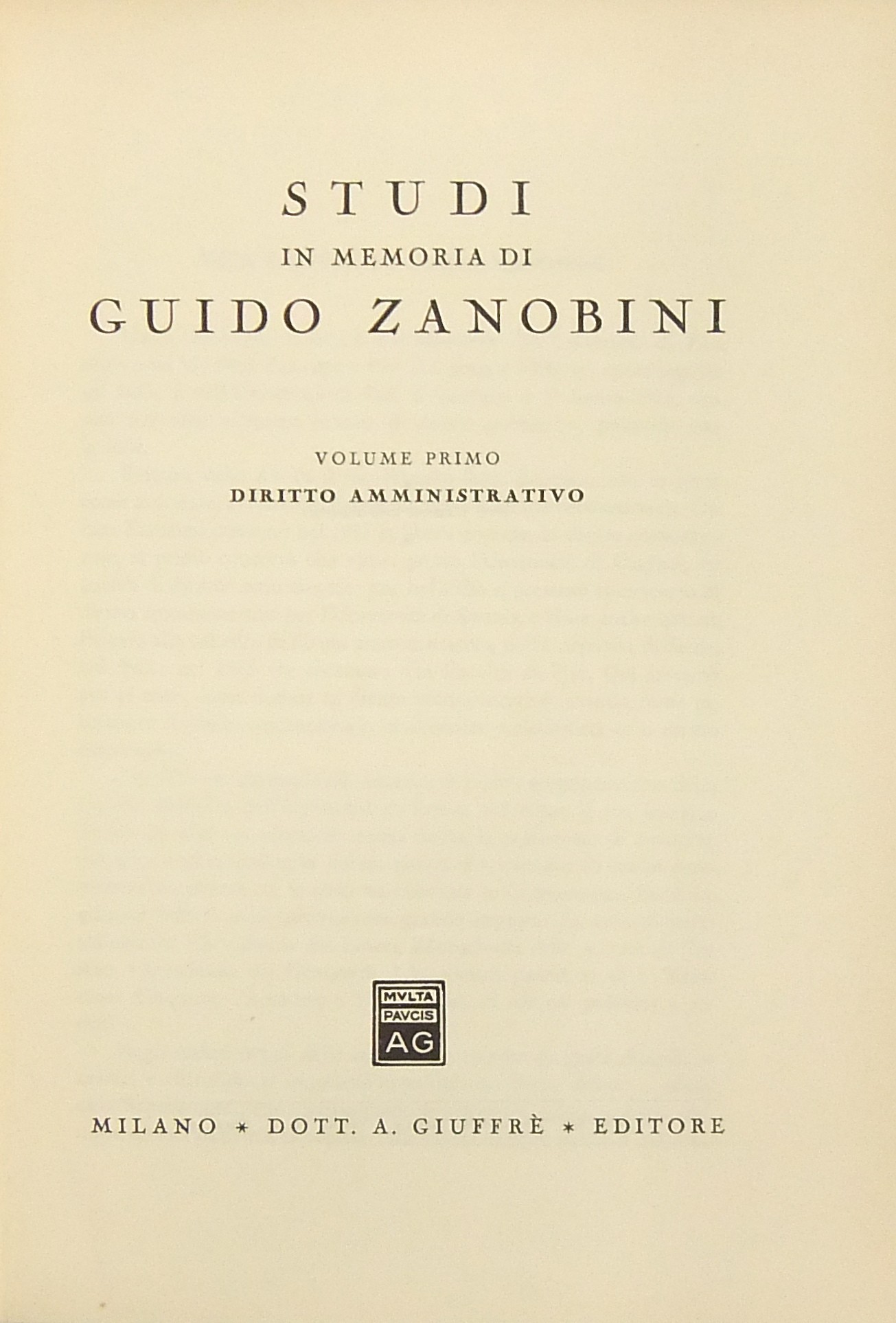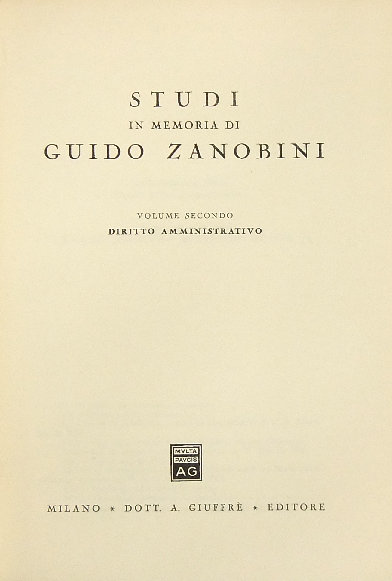 Studi in memoria di Guido Zanobini. Voll. I e II - Diritto amministrativo; Vol. III - Diritto costituzionale; Vol. IV - Diritto internazionale. Diritto finanziario e scienza delle finanze. Diritto canonico. Diritto ecclesiastico; Vol. V - Diritto privato. Storia del diritto e teoria generale. Diritti vari