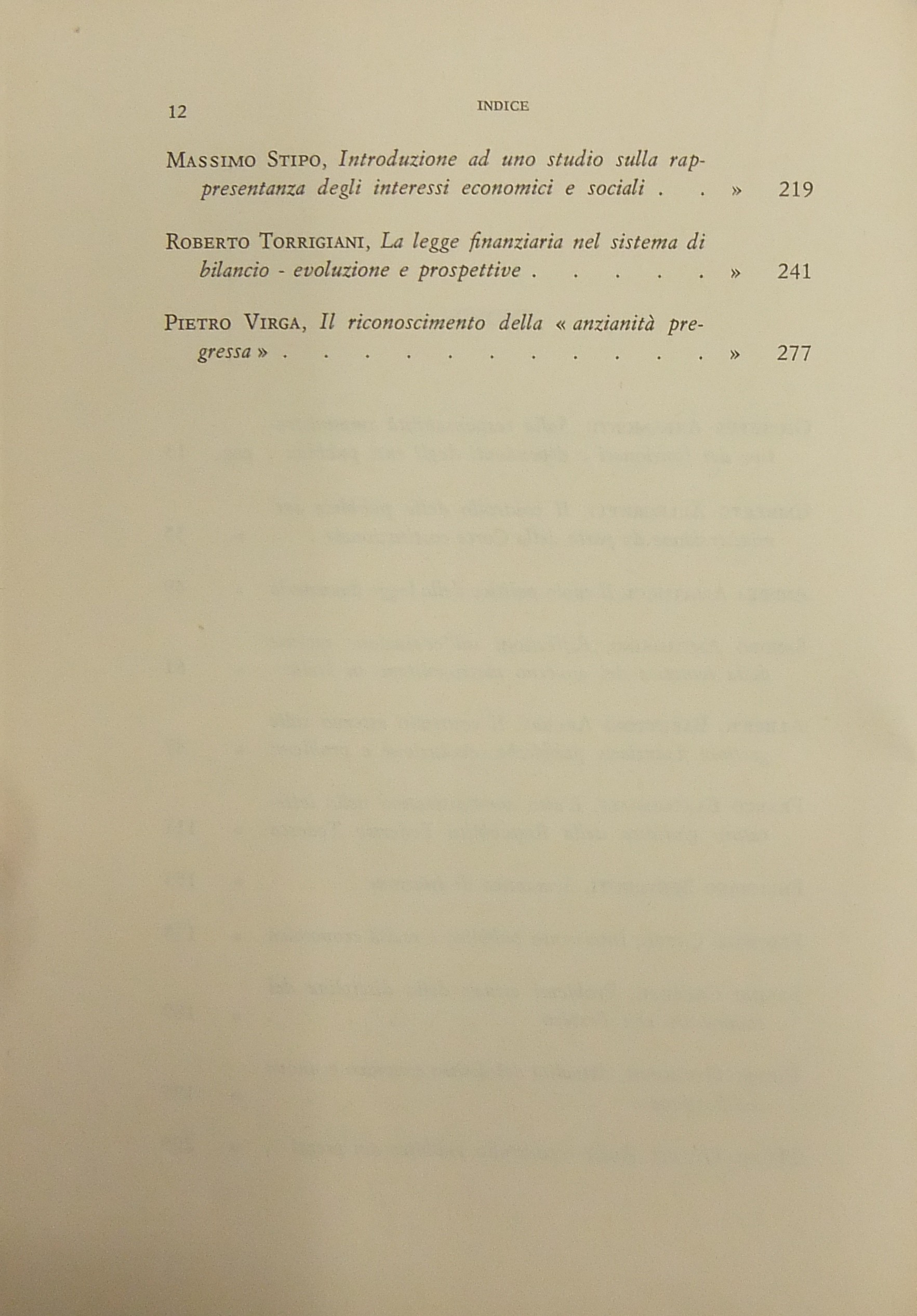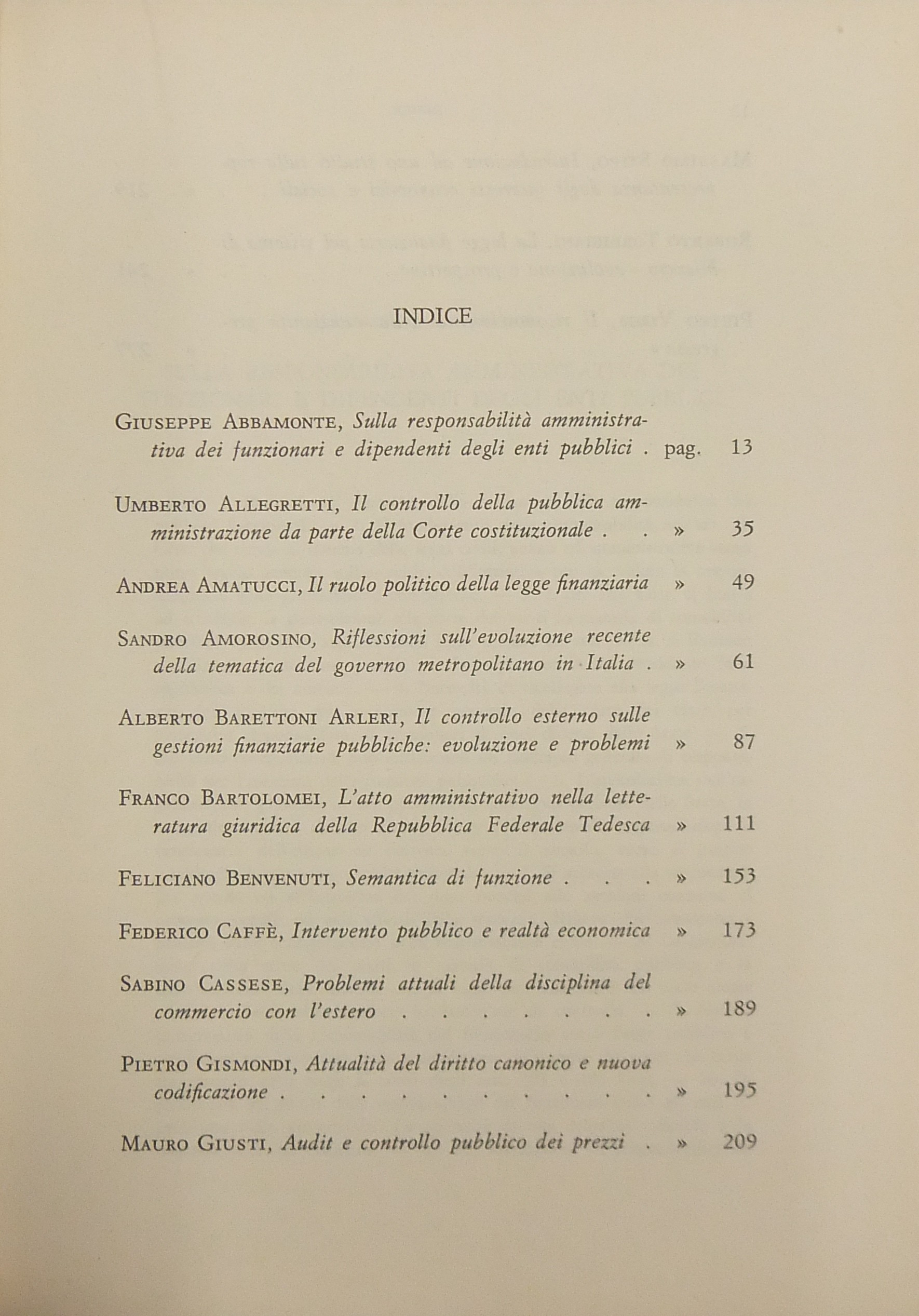 Scritti di: Abbamonte, Allegretti, Amatucci, Amorosino, Barrettoni Arleri, Bartolome, Benvenuti, Caffè, Cassese S., Gismondi, Giusti, Stipo, Torrigiani, Virga