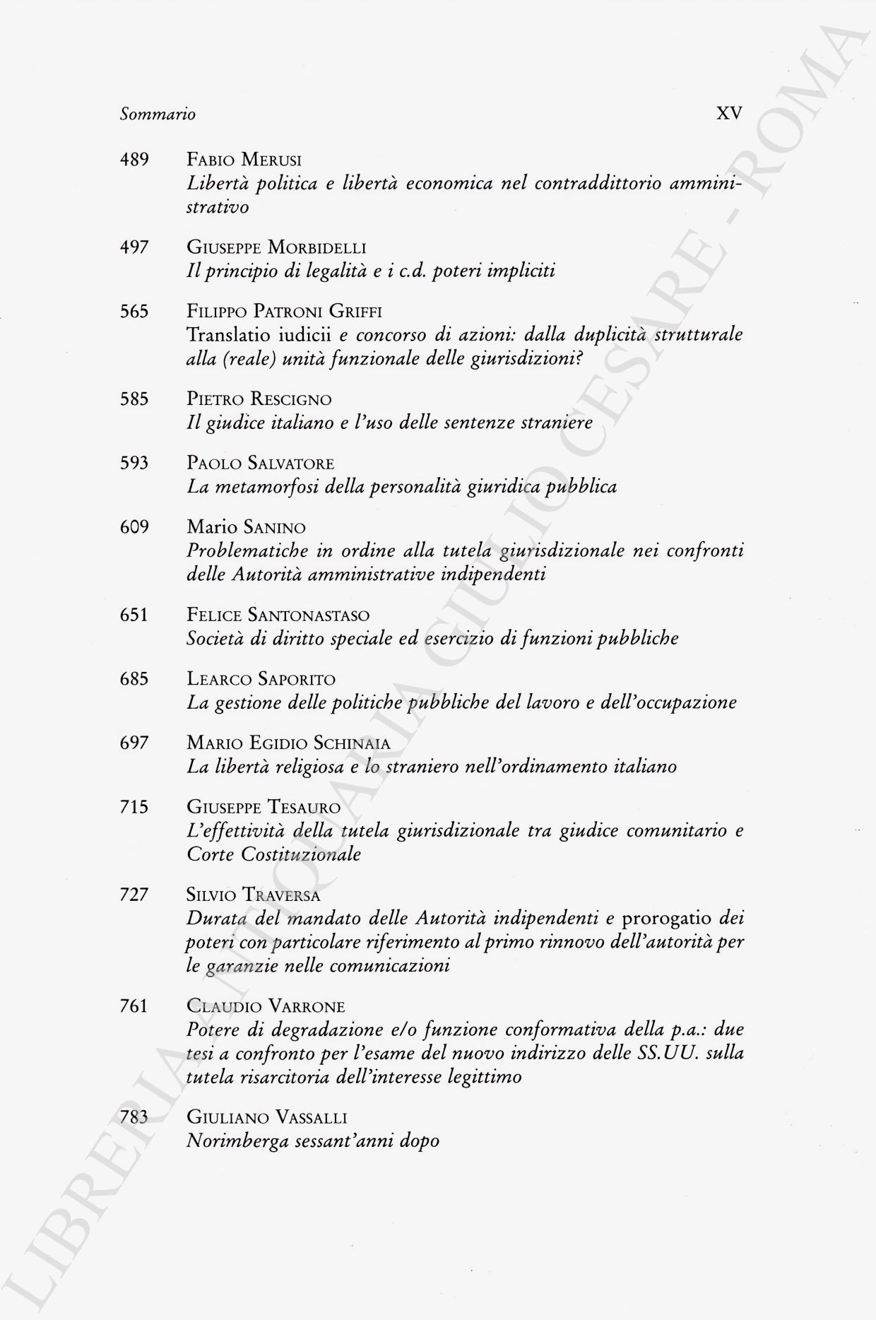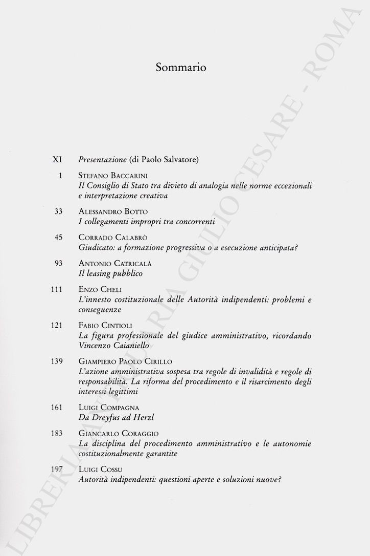 Volume pubblicato con i contributi di Associazione Nazionale Magistrati del Consiglio di Stato. Scritti di: Baccarini, Botto, Calabrò, Catricalà , Cheli, Cintioli, Cirillo, Compagna, Coraggio, Cossu, Delfini, de Lise, De Roberto, D’Ottavi, Faberi, Ferri M., Giacchetti, Giallombardo, Giampaolino, Granata, La Medica, Maruotti, Merusi, Morbidelli, Patroni Griffi, Rerscigno, Salvatore, Sanino, Santonastaso, Saporito, Schinaia, Tesauro, Traversa, Varrone, Vassalli G.