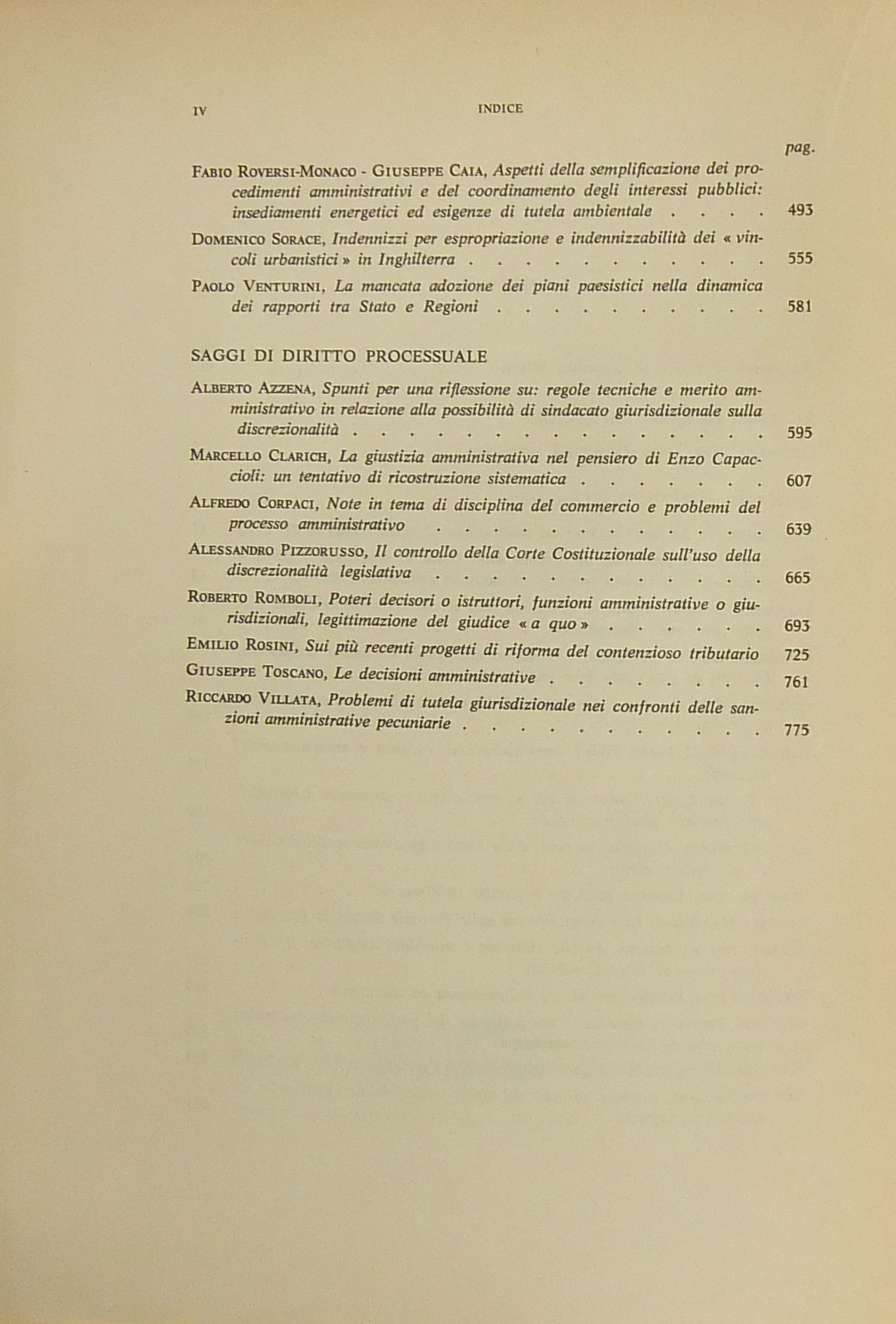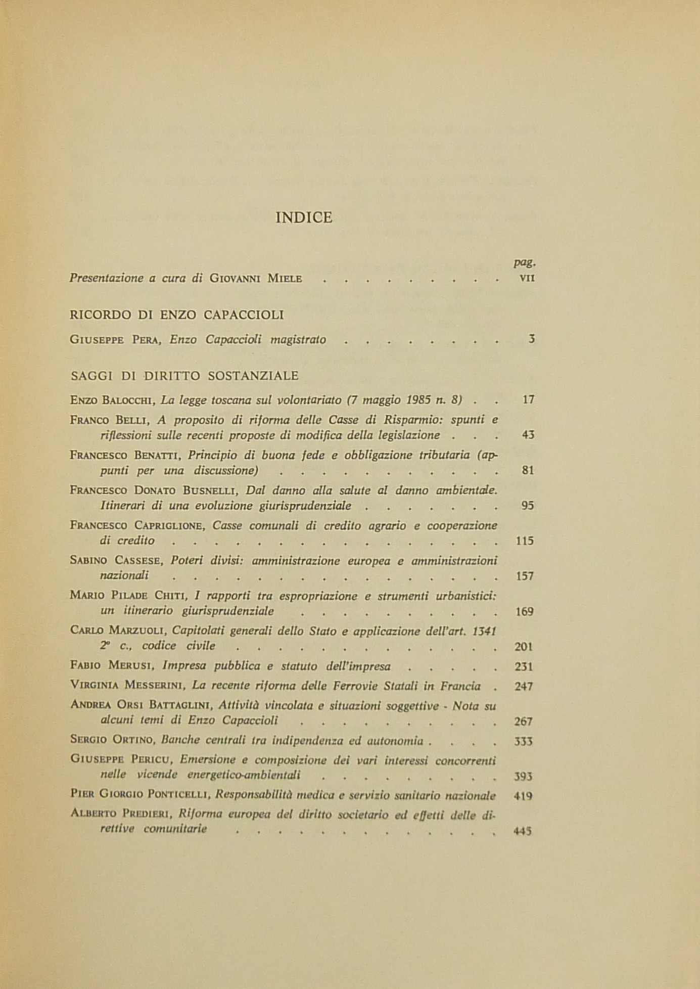Scritti di: Azzena, Balocchi, Belli, Benatti, Busnelli, Caia, Capriglione, S.Cassese, Chiti, Clarich, Corpaci, Marzuoli, Merusi, Messerini, G.Miele, Orsi Battaglini, Ortino, Pera, Pericu, Pizzorusso, Ponticelli, Predieri, Romboli, Rosini, Roversi Monaco, Sorace, Toscano, Venturini, Villata.